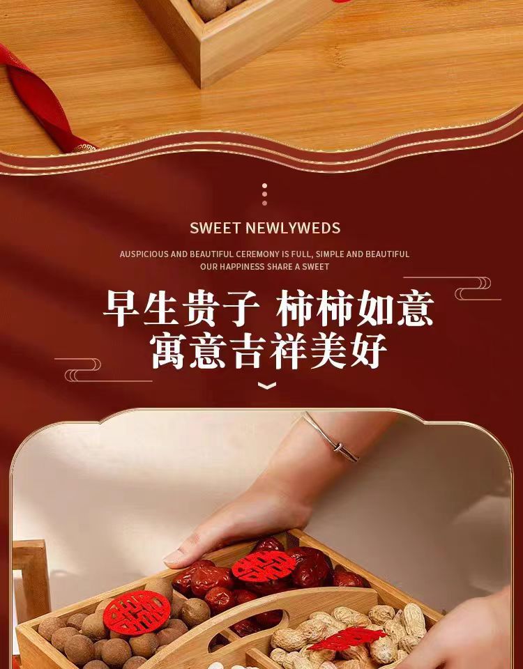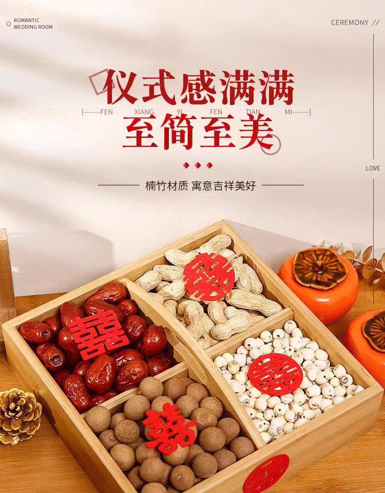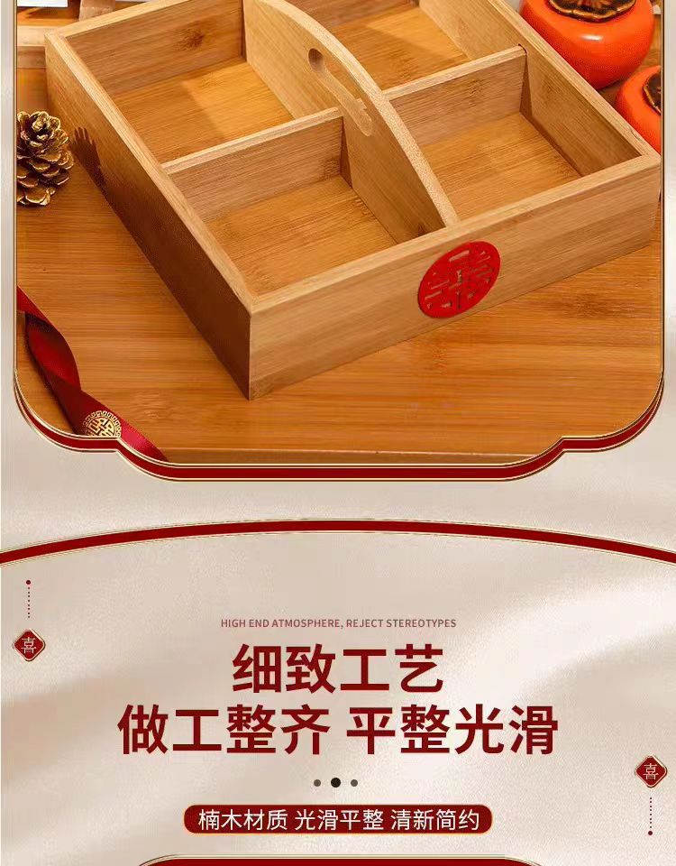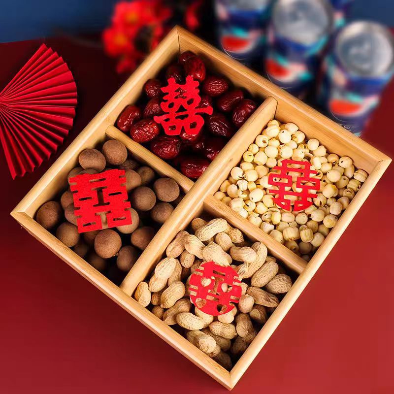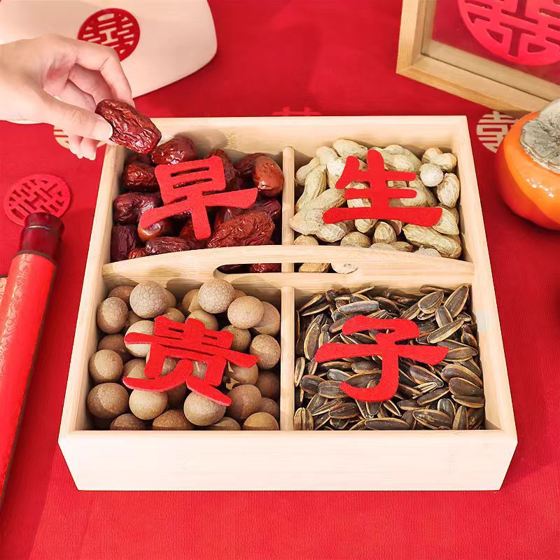 婚約結婚早生貴子乾果箱果物皿置物実木四宮格手提げ式デスクトップ収納キャンディー箱