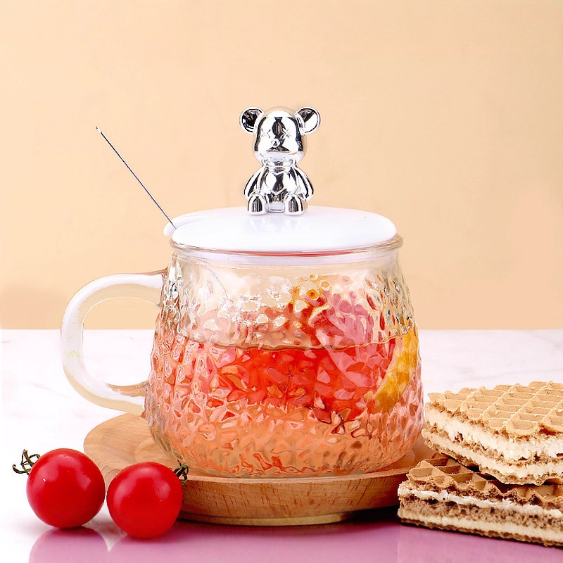 イン高見えクマガラスカップ蓋付きミルク朝食カップ夏の新しい水カップ女性コーヒー冷たいドリンクカップ