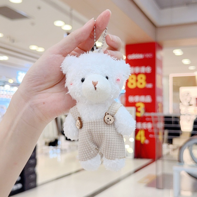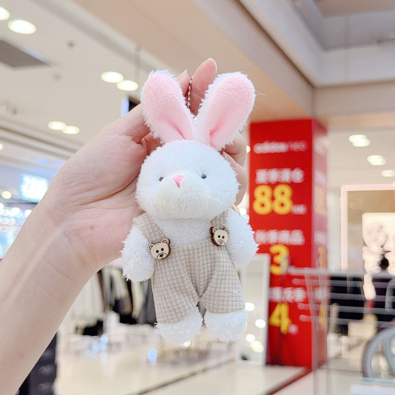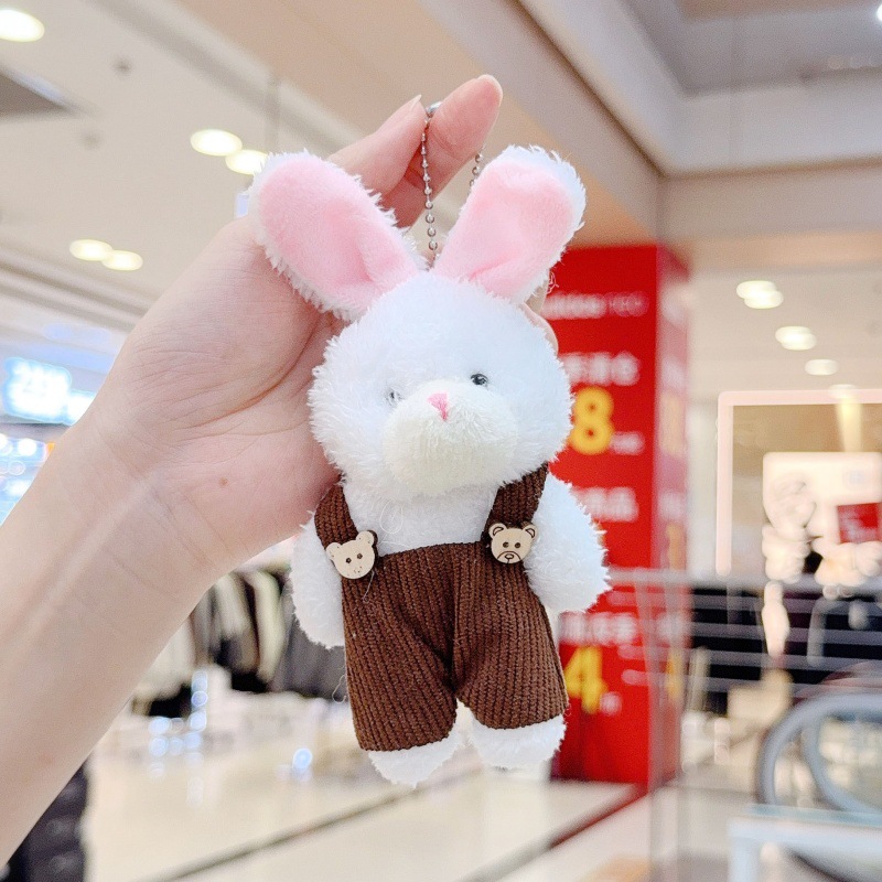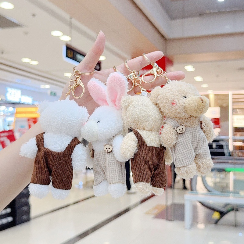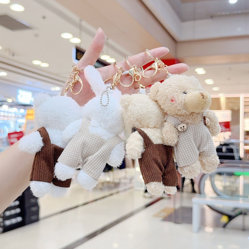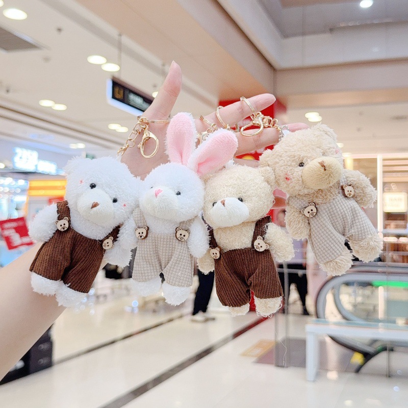 可爱背带裤腮红熊小兔卡通公仔情侣背包挂饰挂件毛绒钥匙扣小礼品