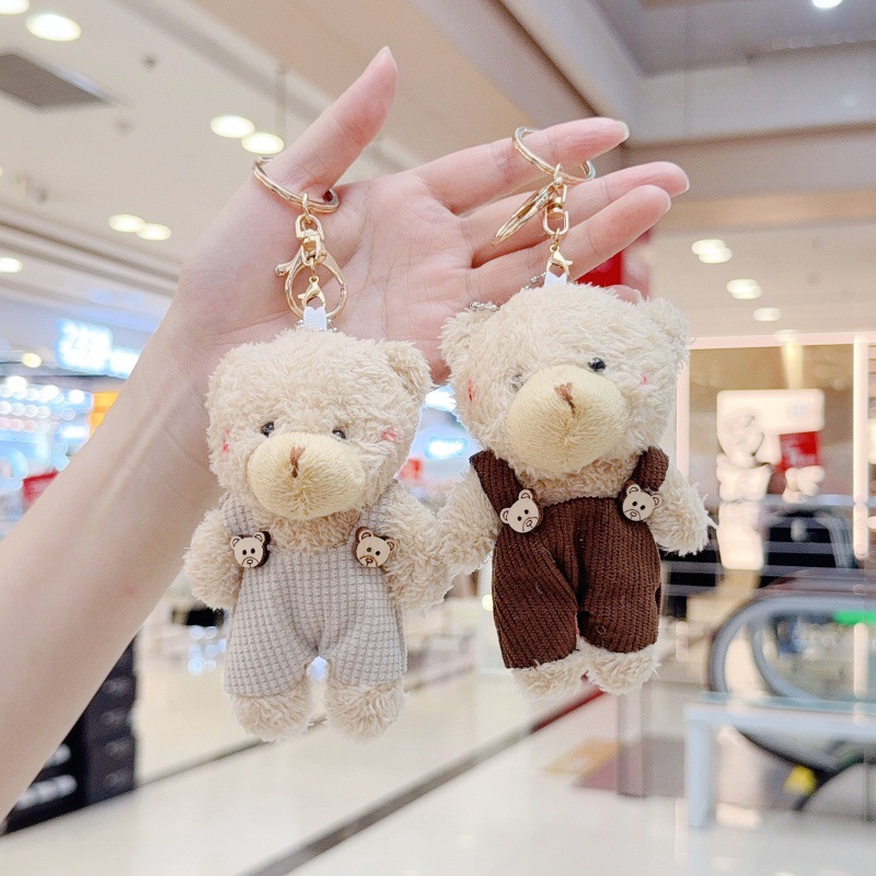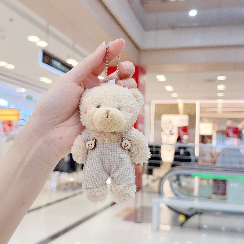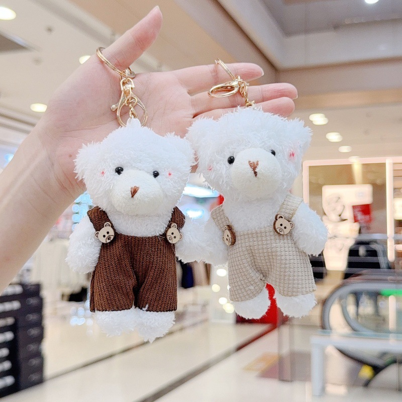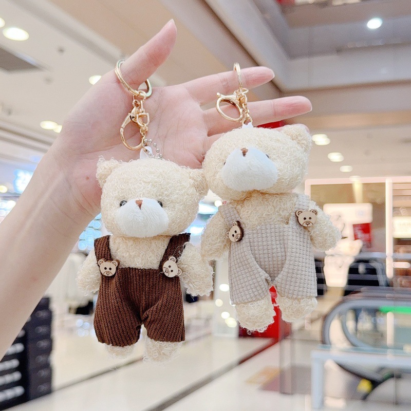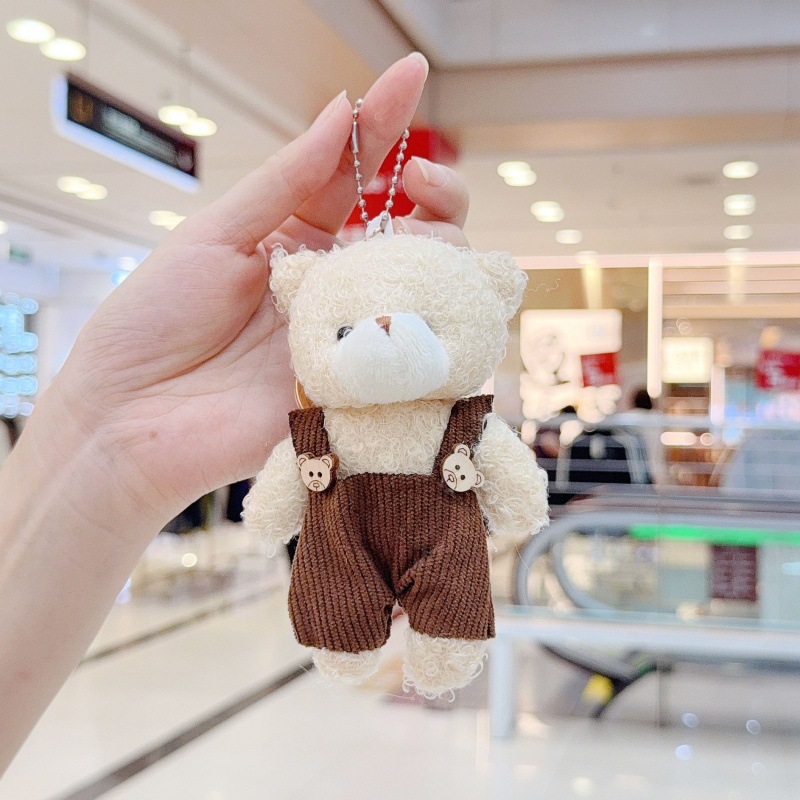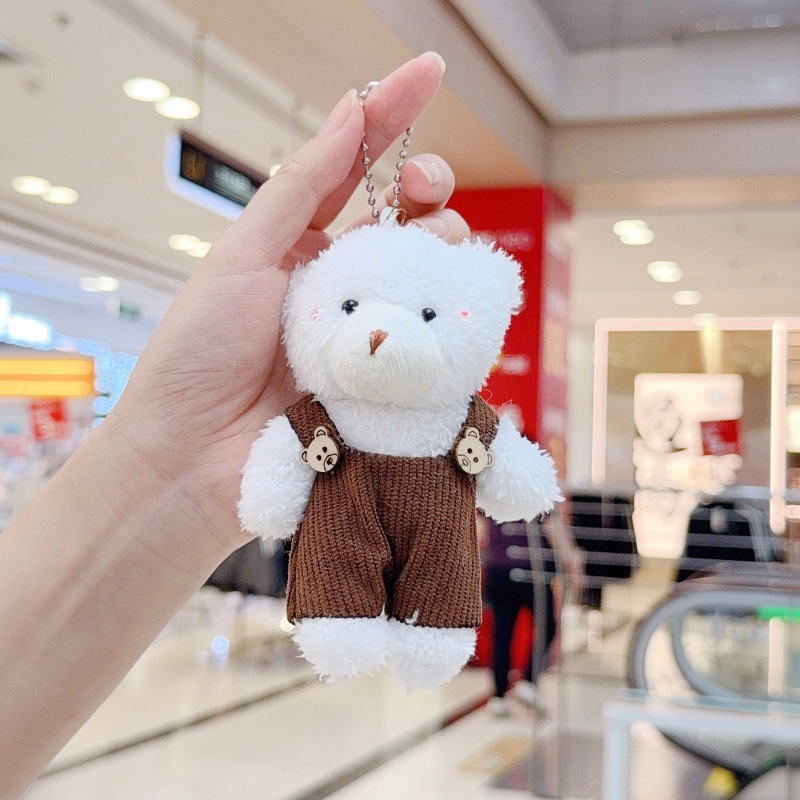 可爱背带裤腮红熊小兔卡通公仔情侣背包挂饰挂件毛绒钥匙扣小礼品