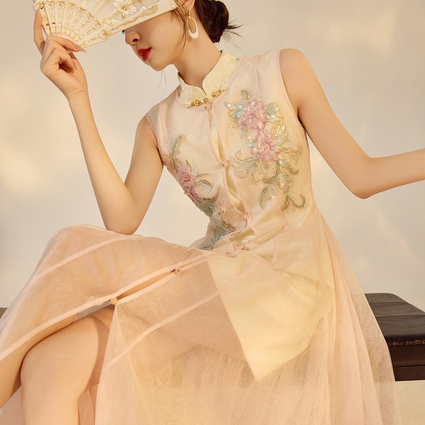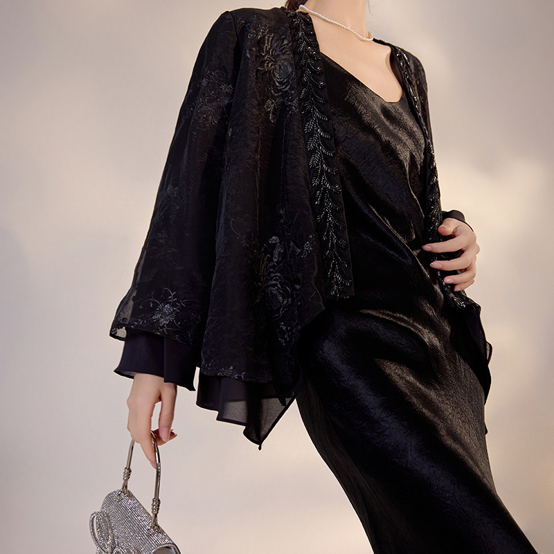 中国風の夏 2025 新しいスパンコール刺繍ロングカーディガントップ新しい中国風の刺繍ドレススーツ N5033