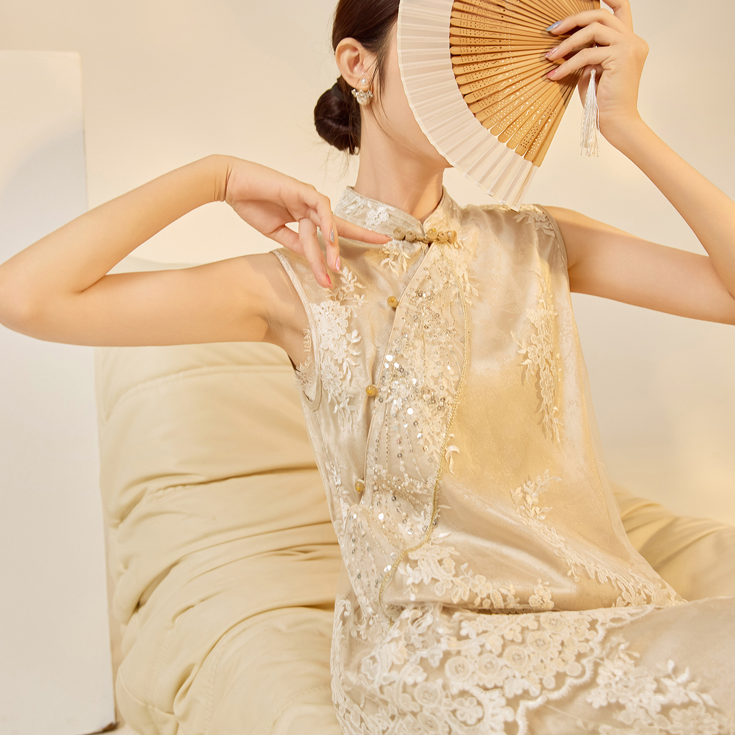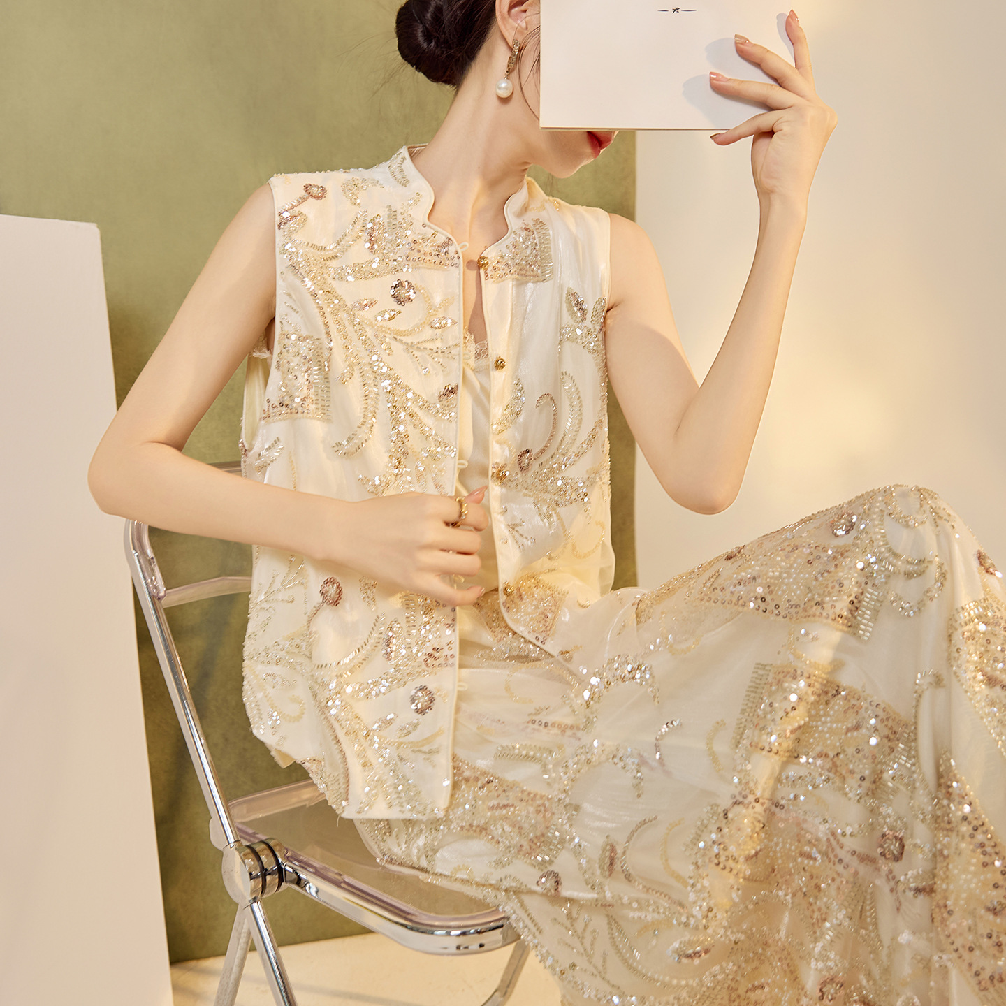 2025新中式高级立领背心夏季国风重工珠绣设计马甲半裙套装 N6079