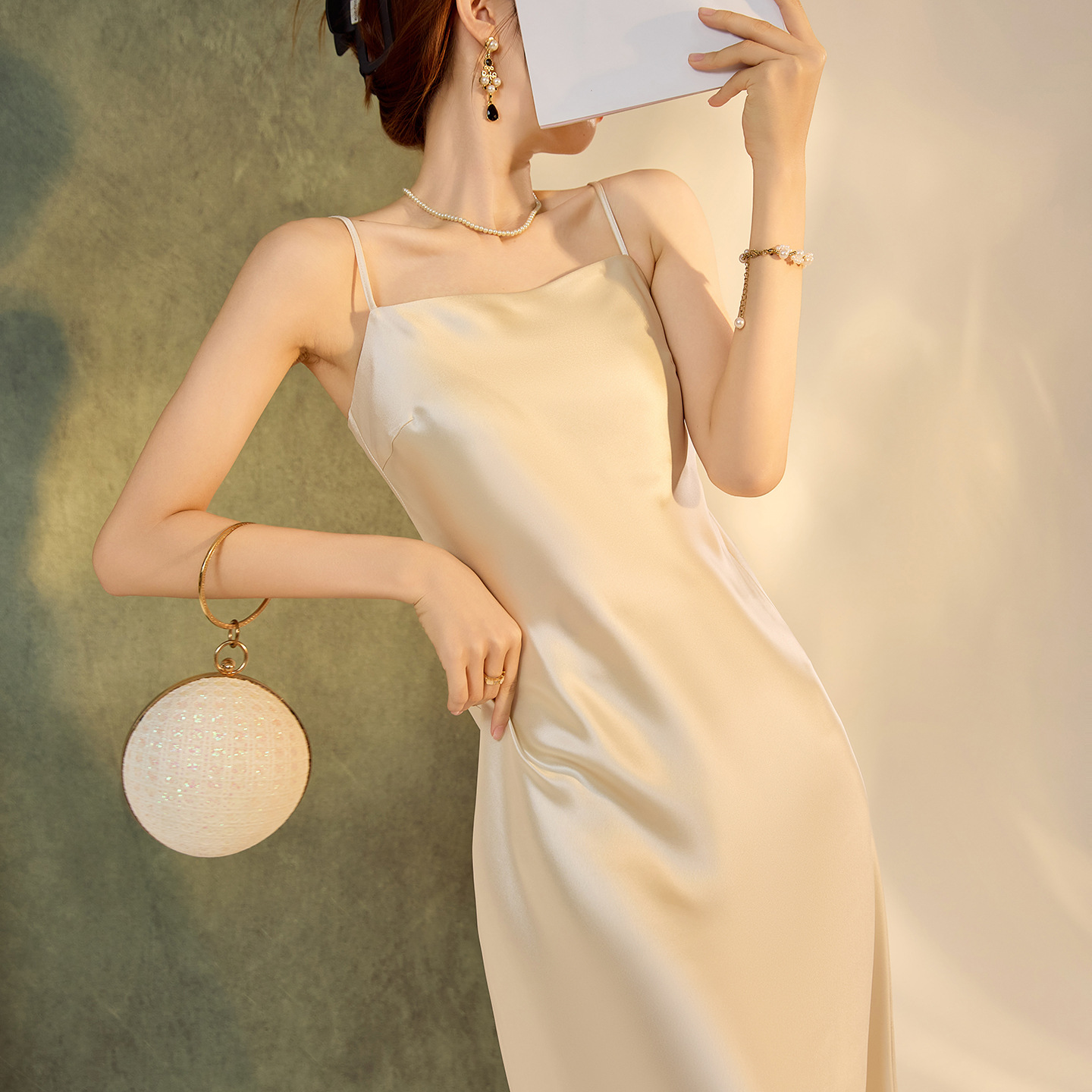 高級感のある新中式風新型ライトラグジュアリースリップドレス2025秋ファッション無地デザインAラインロングドレスM8127
