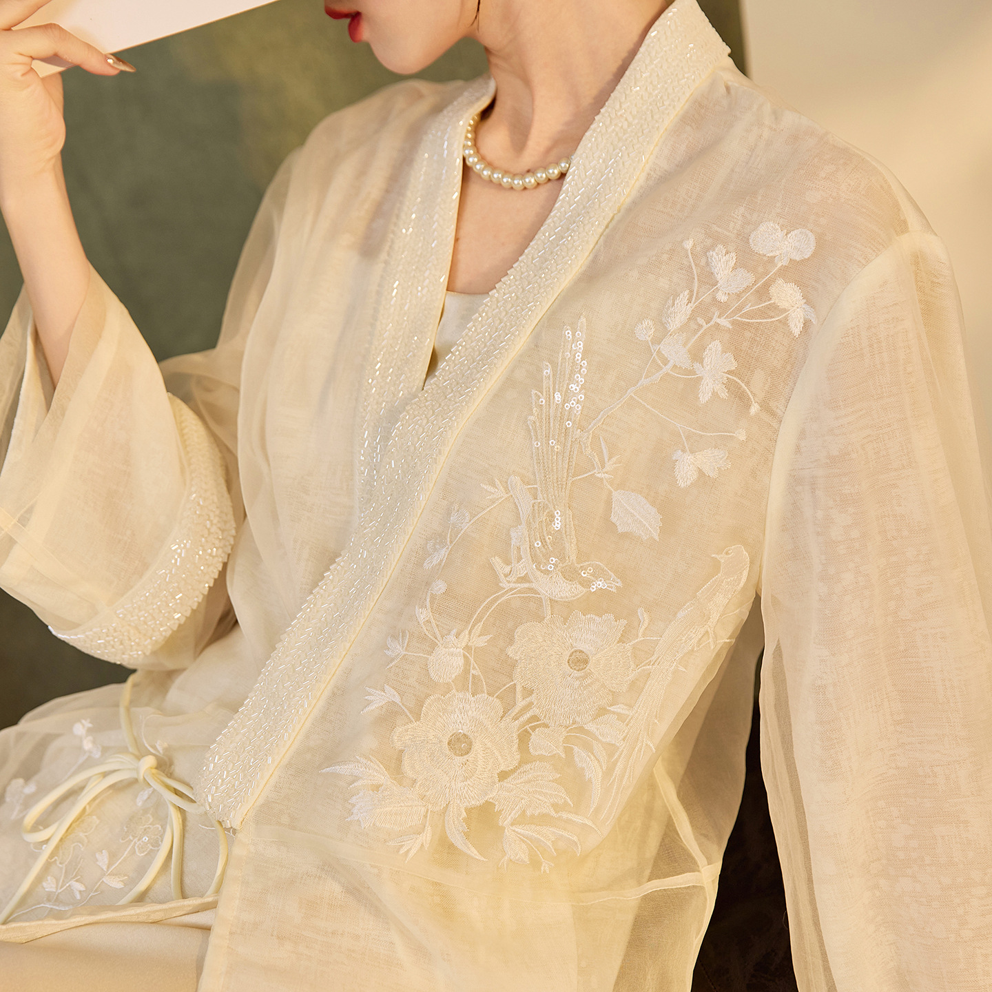 国風2025春夏新作気質刺繍軽豪華上着新中国式百合釘珠カーディガンコートN3001