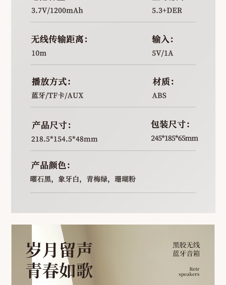 播放方式:蓝牙/TF卡/AUX