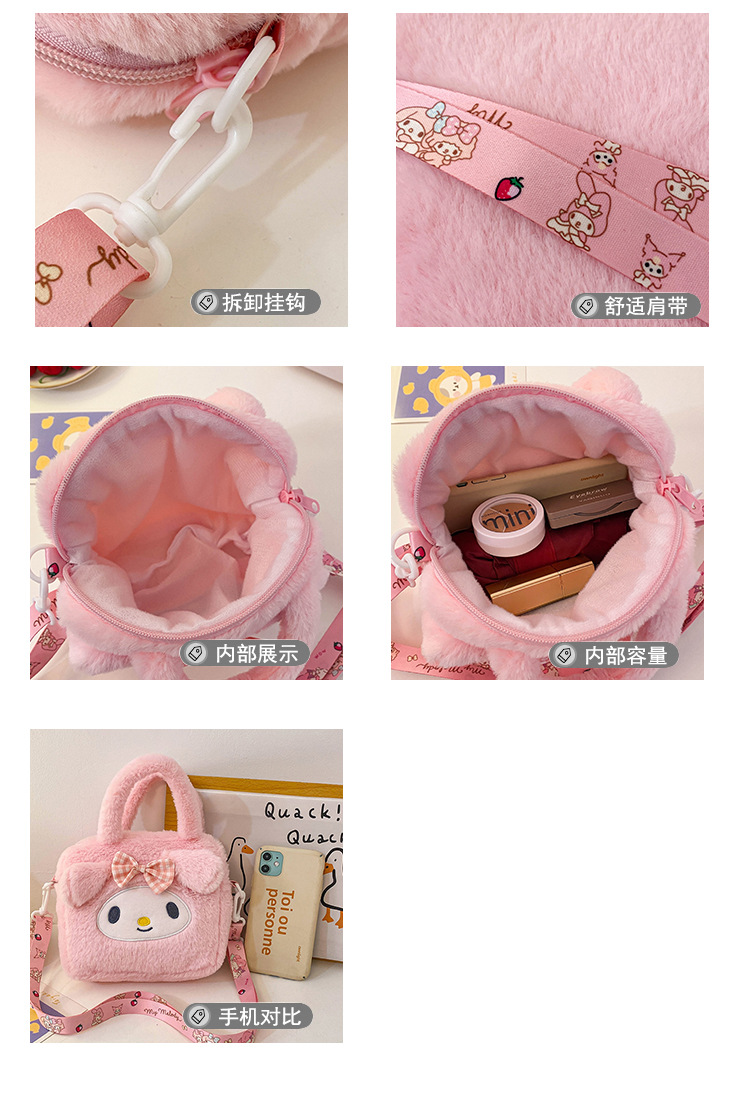 漫画のサンリオのクロミの毛の絨毛は手提げて化粧の公の子を包んで子供を捕まえます。