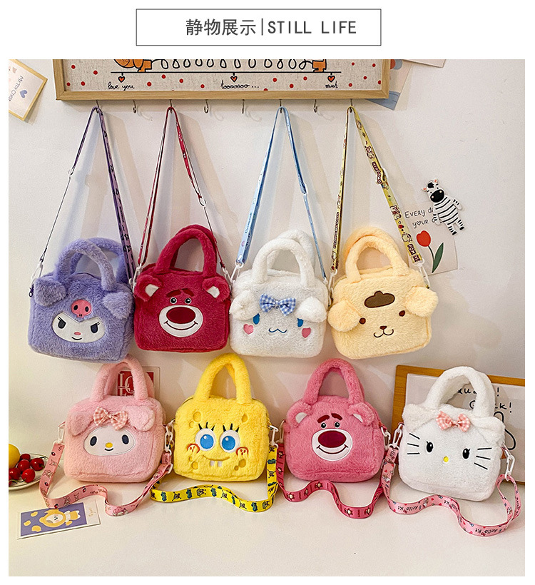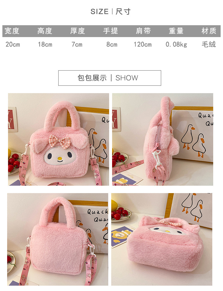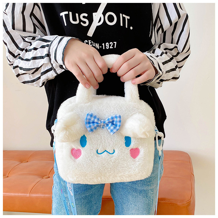 厂家批发三丽鸥毛绒手提包玉桂狗卡通日系毛绒玩具包包抓机娃娃包