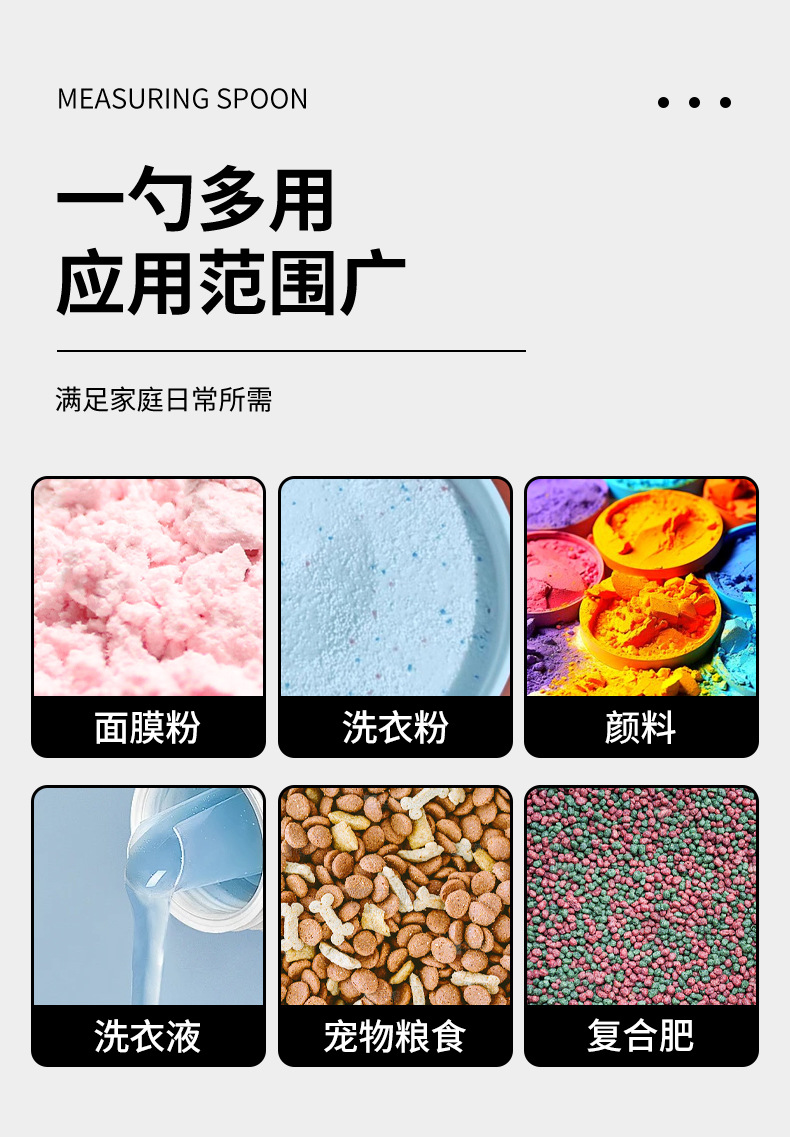 フェイシャルマスクパウダー用計量スプーン15g、プラスチック製計量スプーン30ml、洗濯洗剤粉末15g、肥料・飼料・農薬用計量スプーン