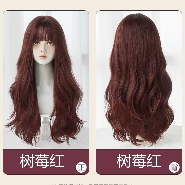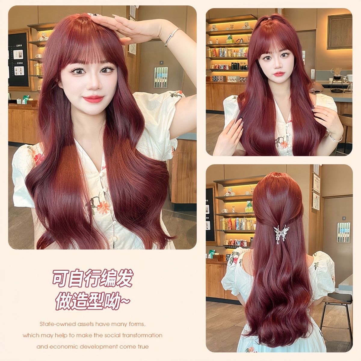 【古董玫瑰】红色假发全头套女八字刘海大波浪长卷发自然全头套式