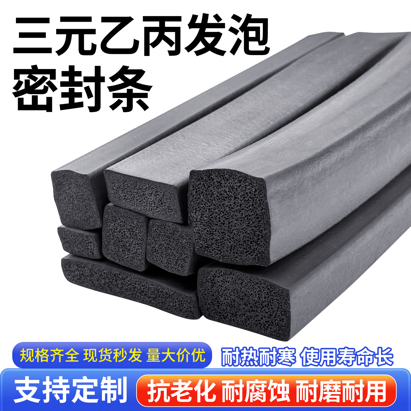 三元乙丙发泡密封条EPDM海绵条方条电机柜门船用耐老化橡胶密封条
