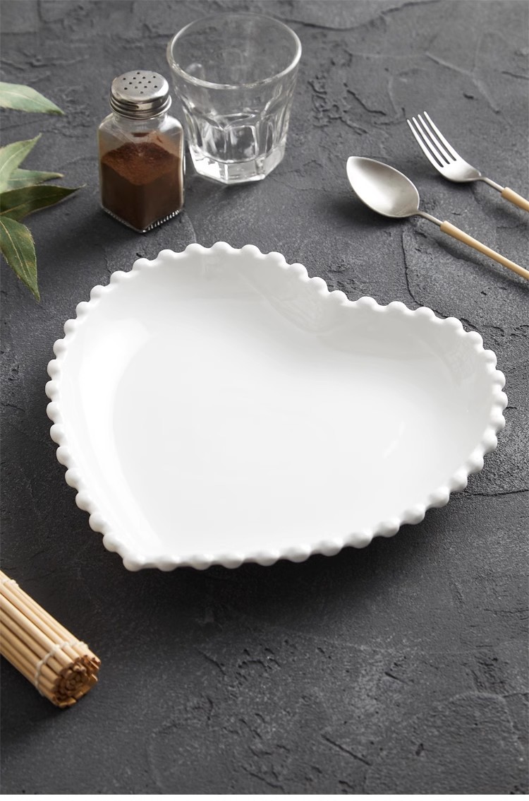 8inch ビーズドットピーチハートプレート【光沢ホワイト】,10inch ビーズドットピーチハートプレート【光沢ホワイト】