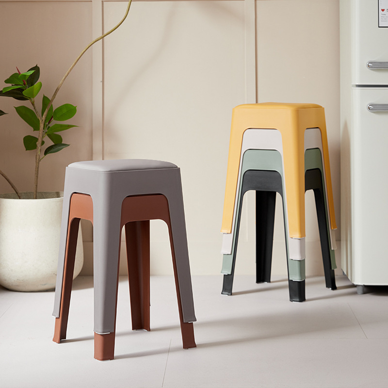 凳子家用加厚结实塑料客厅软包方凳吃饭简约防滑板凳叠放餐桌高凳