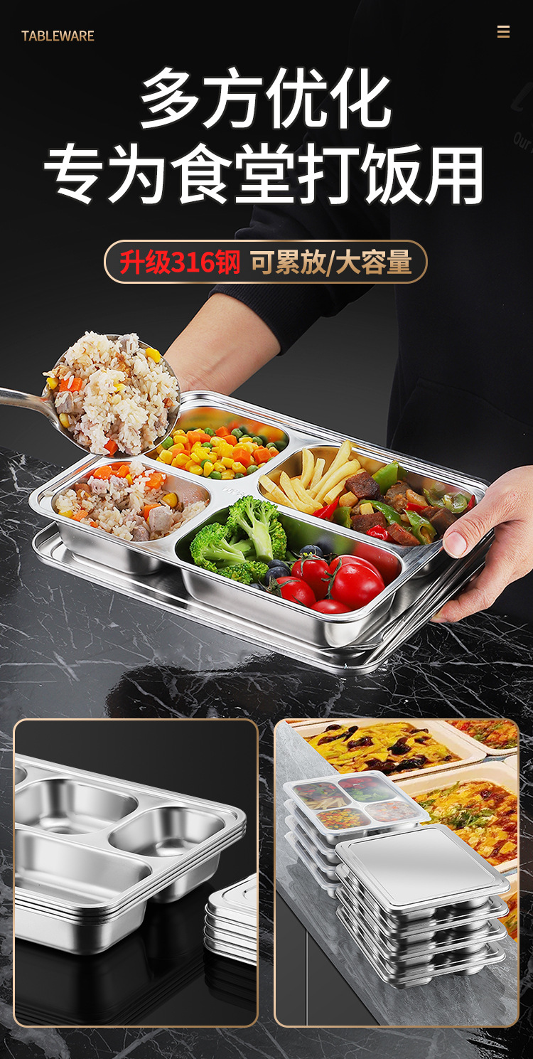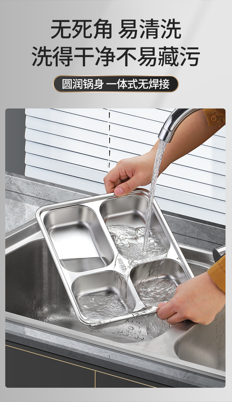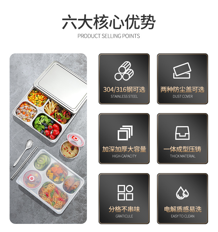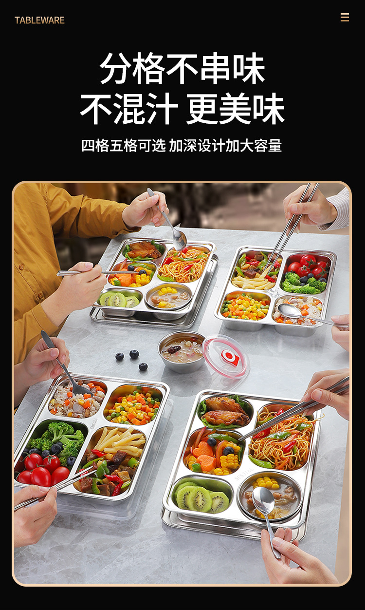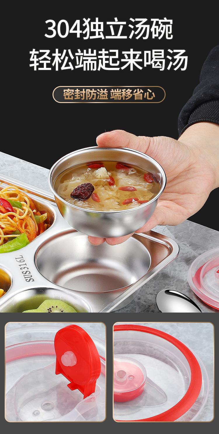 304ステンレスの中国式のファーストフードの皿は格の弁当箱を分けて出勤します。