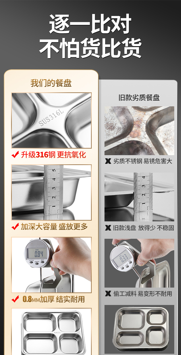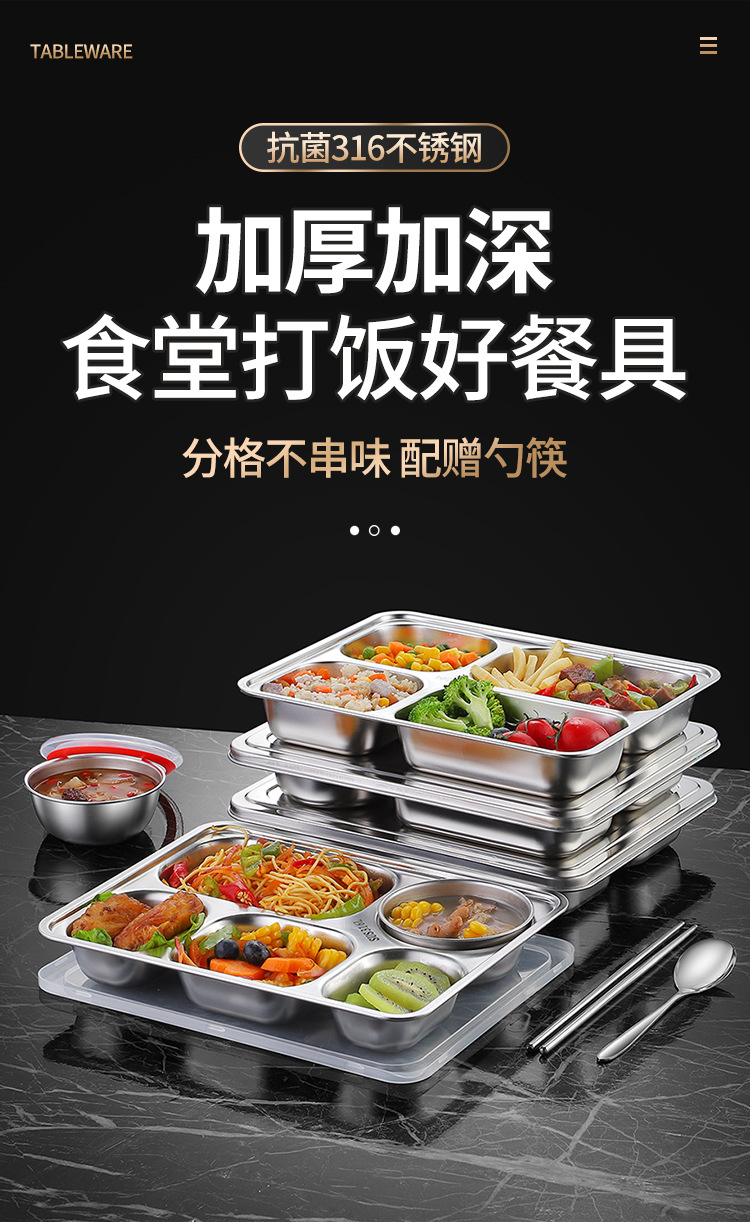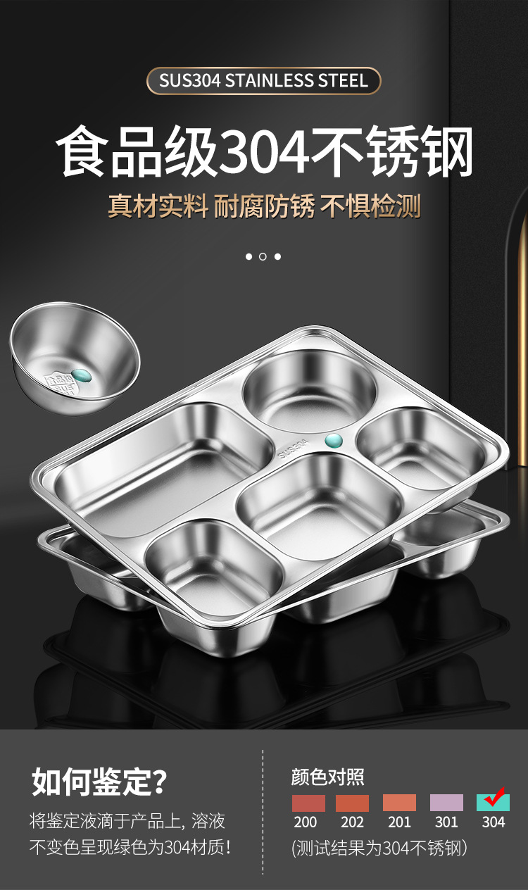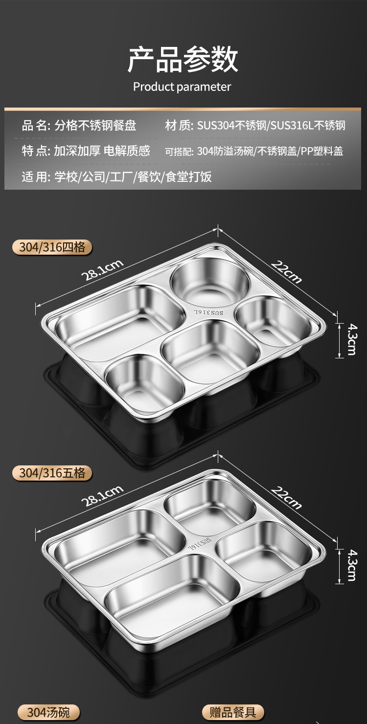 304ステンレスの中国式のファーストフードの皿は格の弁当箱を分けて出勤します。
