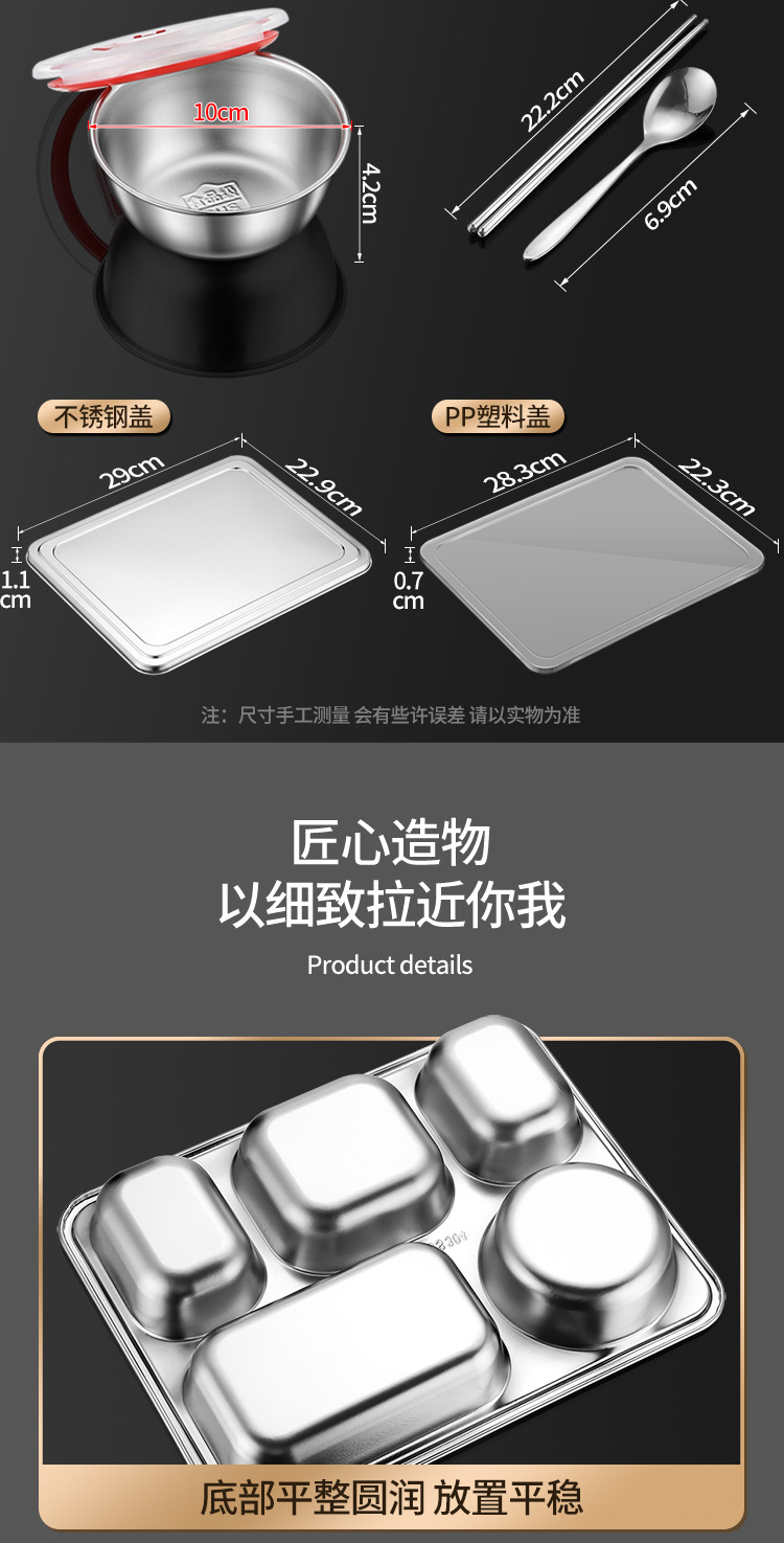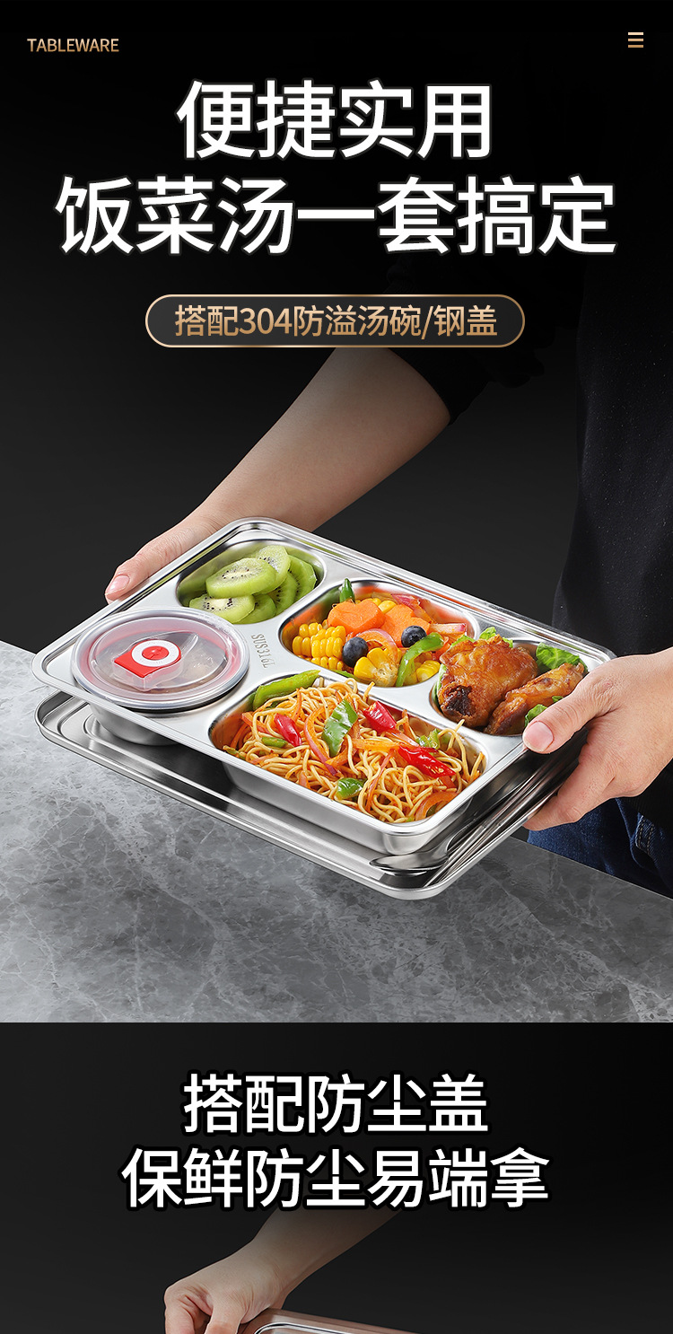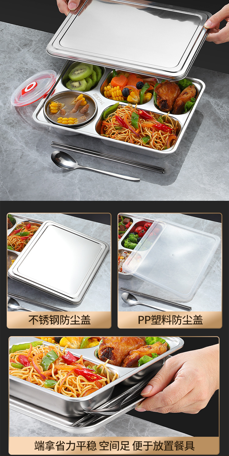 仕様 4コンパートメントのディナープレート,5コンパートメントのディナープレート,プラスチックカバー,ステンレス鋼のカバー,10cmスープボウル
