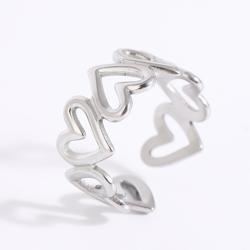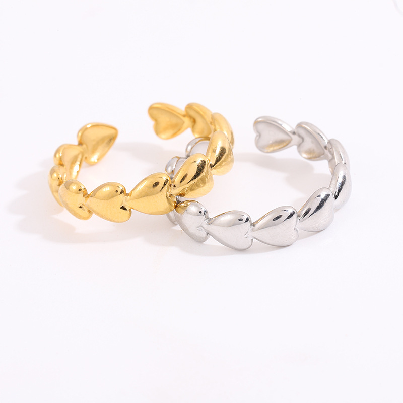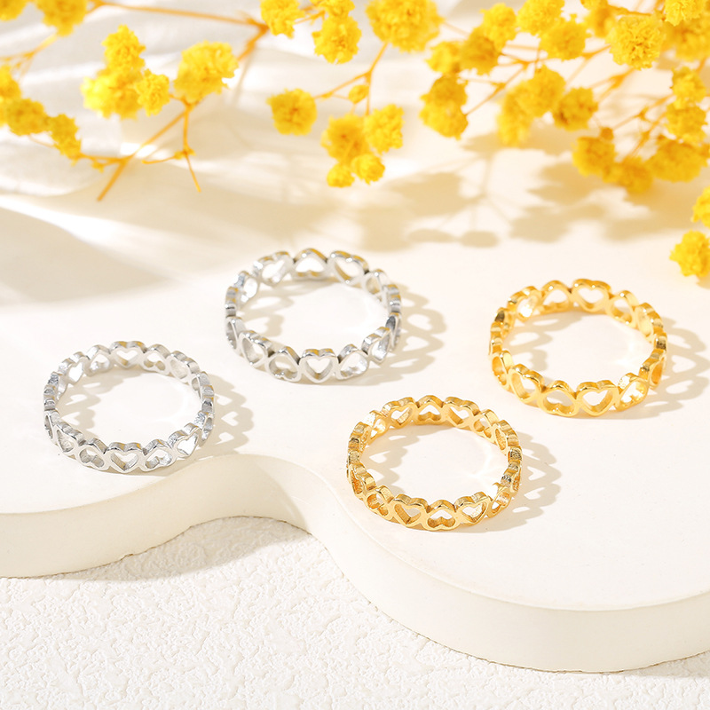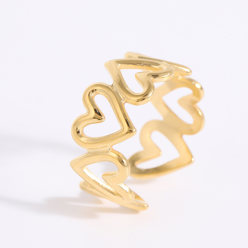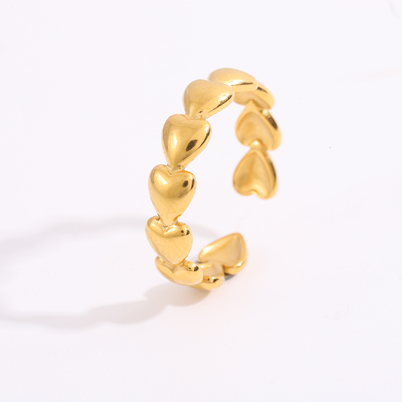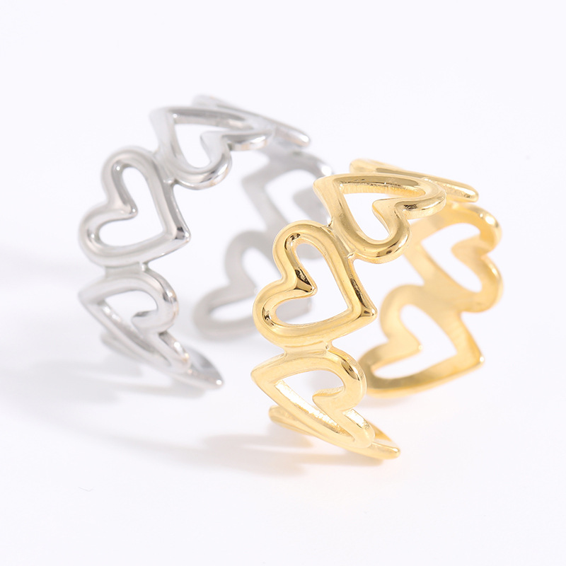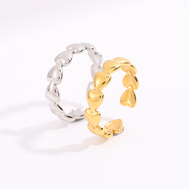 おしゃれで爽やかなハート型チタン鋼リング18Kゴールド人差し指・小指用リングアクセサリー愛の象徴女性個性派ins韓国風