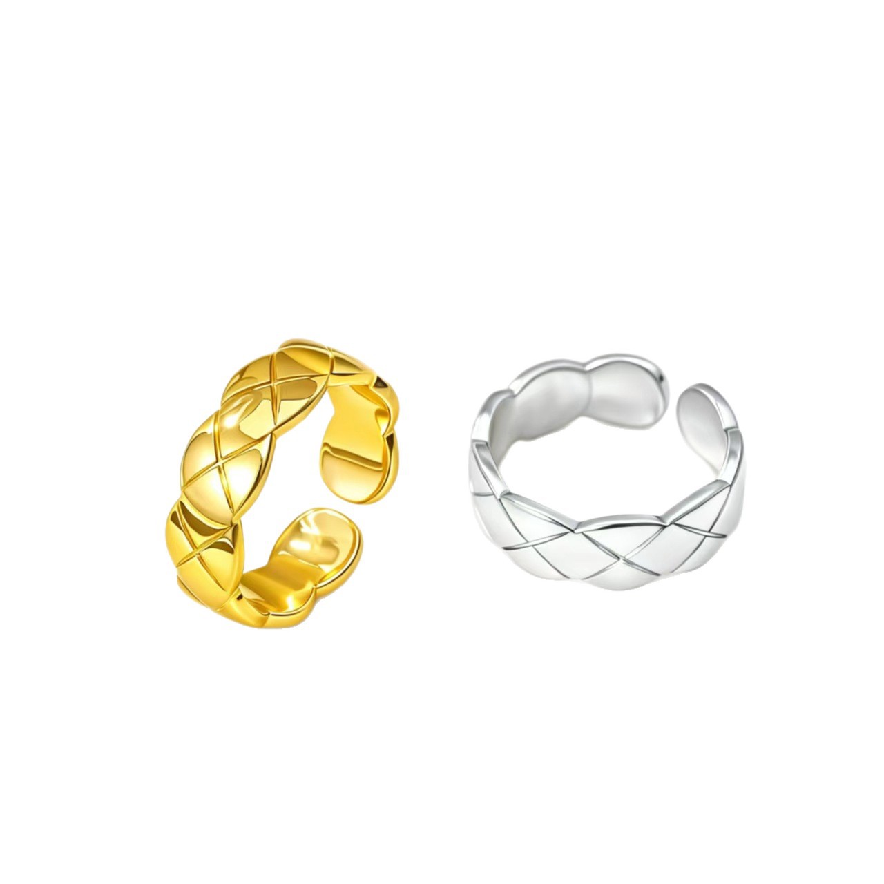 菱格纹开口戒指女2025新款小众设计钛钢不掉色轻奢高级感食指戒