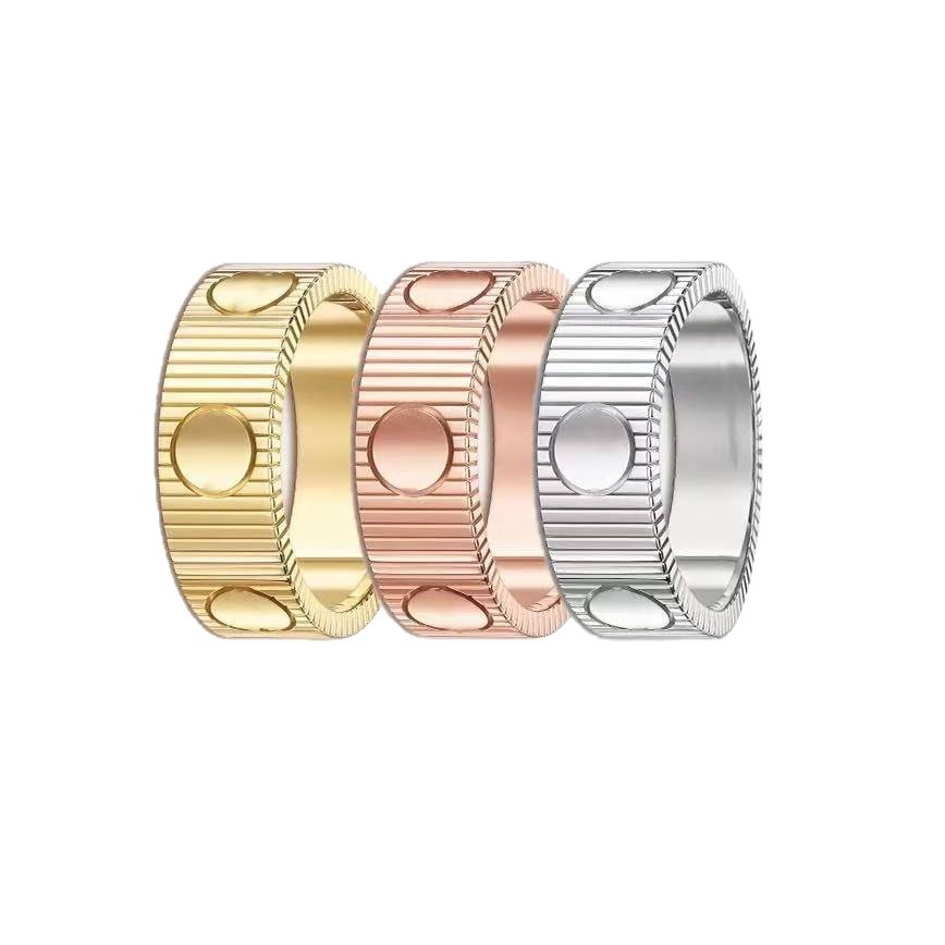 cnc全新款卡加螺钉纹线条齿轮戒指设计18k玫瑰金经典情侣钛钢对戒