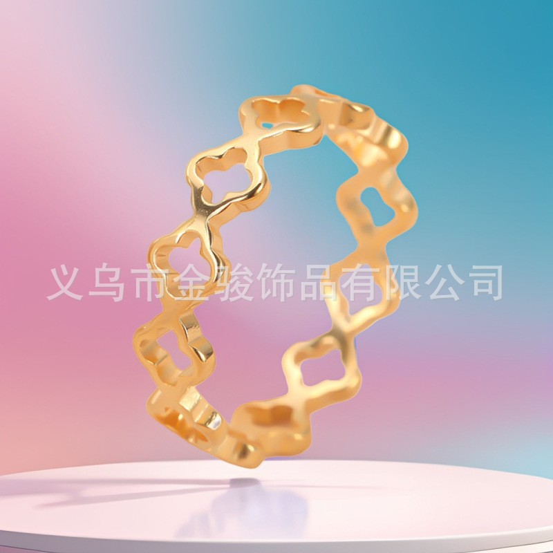 国境を越えたファッション四葉草チタン鋼指輪18k金シンプルな小花素輪指輪アマゾンの新しい指輪女
