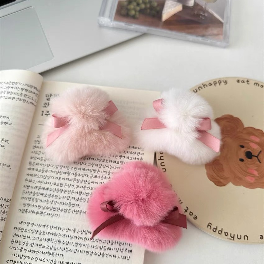 2024秋冬の韓風の優しい蝶結びのウサギの毛は少女の後頭部のぬいぐるみのクリップの髪飾りの女性を挟みます。