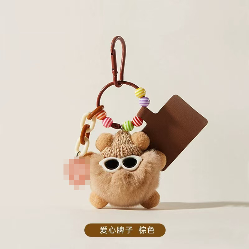 可爱卡套挂件獭兔毛小煤球毛绒公仔书包挂饰礼物汽车钥匙扣卡套
