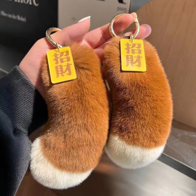 タイガーテール] かわいいリアルレッキスラビットファー車のキーホルダーペンダントぬいぐるみ漫画ギフトスクールバッグペンダント