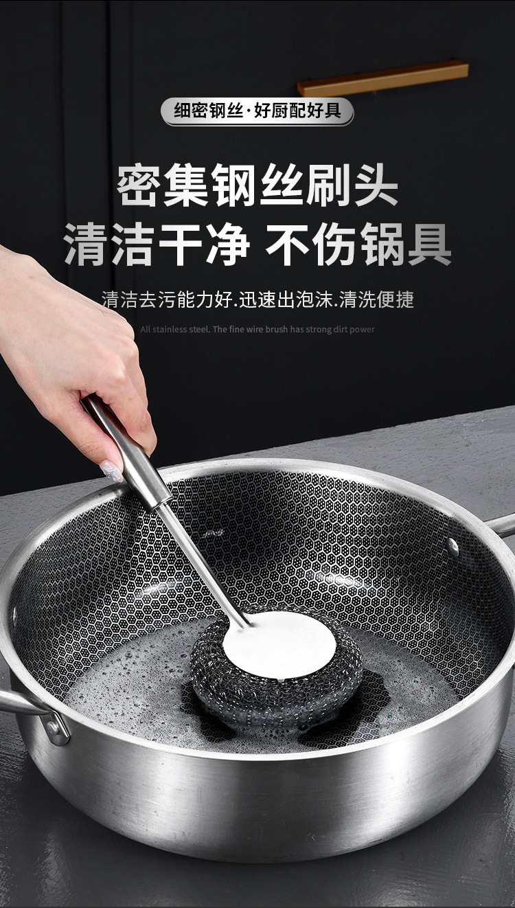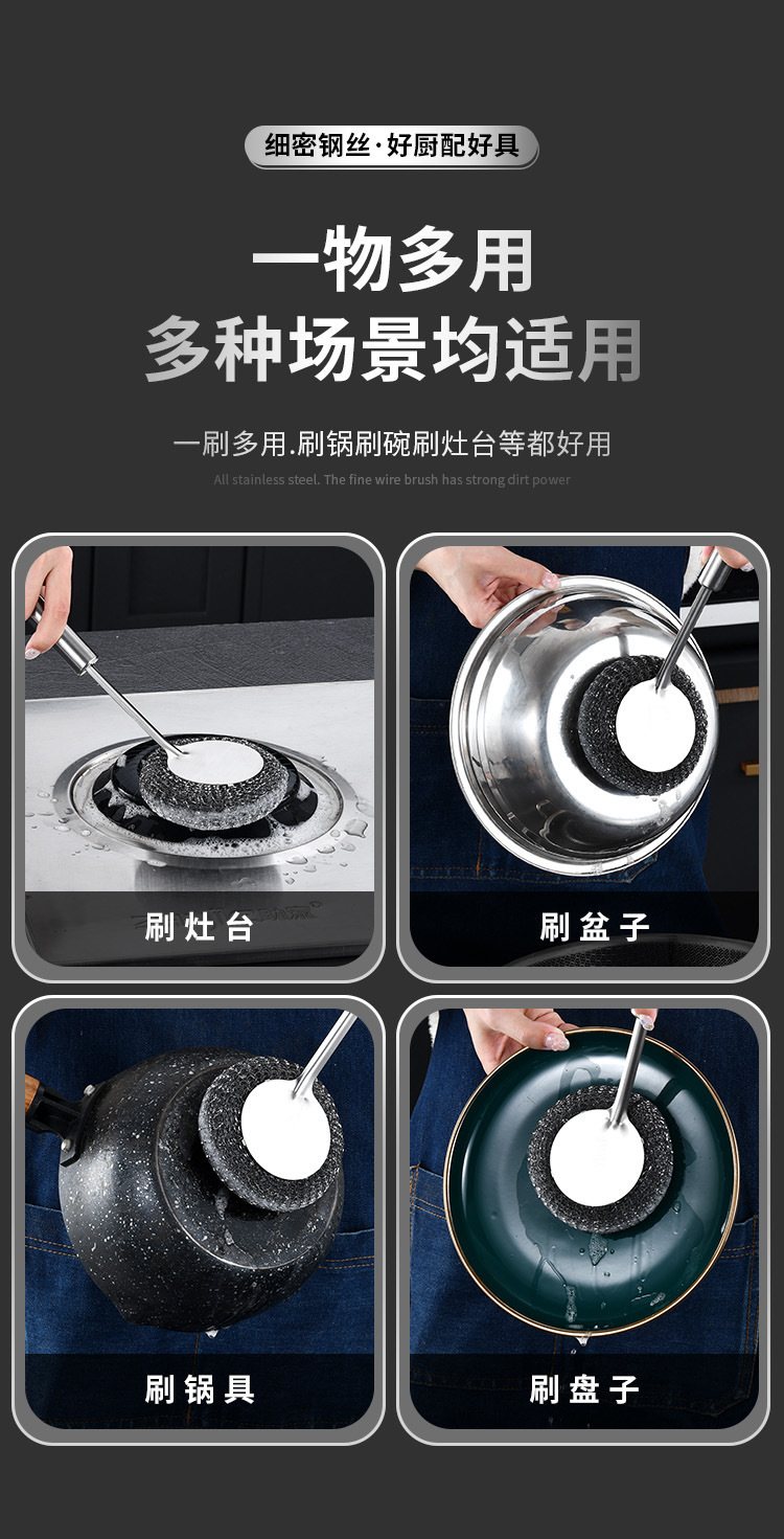不锈钢锅刷加长手柄不冻手厨房专用清洁神器刷锅刷锅钢丝刷清洁刷