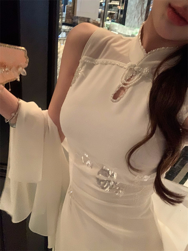 夏の新しい中国風改良チャイナドレス気質スカート婦人服2025秋の新しい白いロングスカート