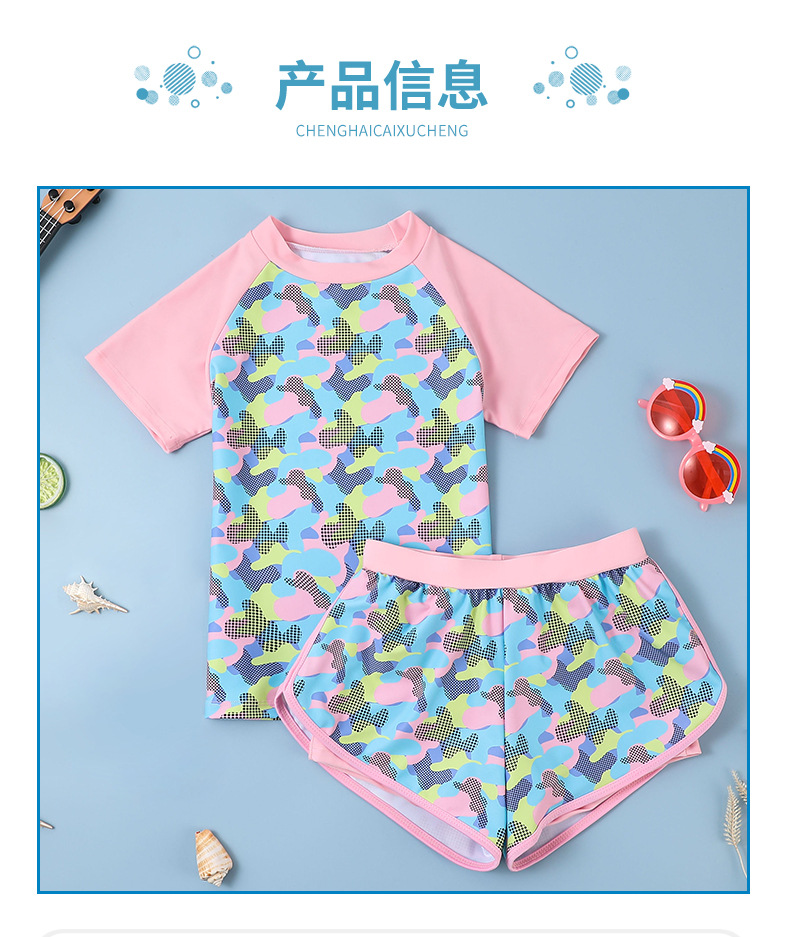 子供用セパレート水着セット女の子用半袖半ズボン大中小子供用速乾ワンピース2点セット
