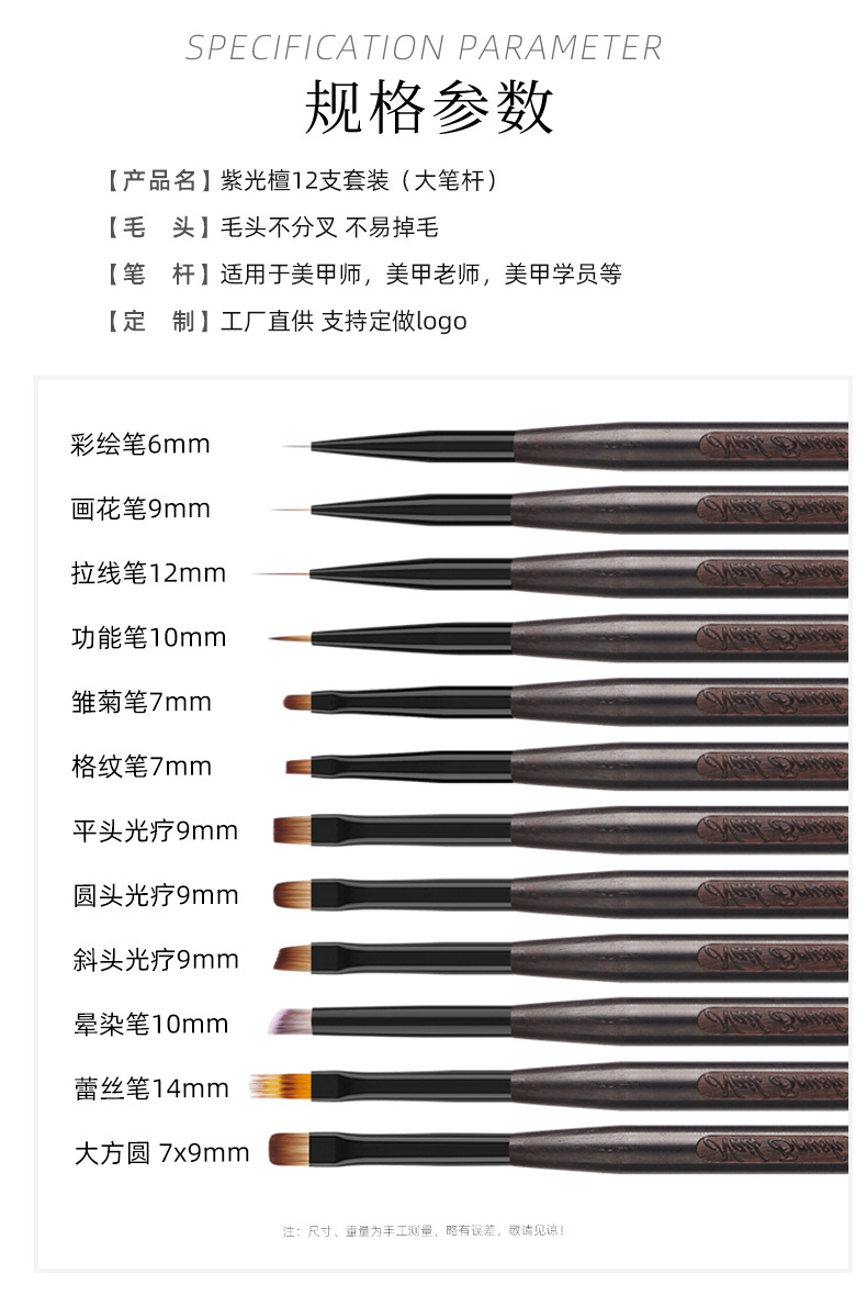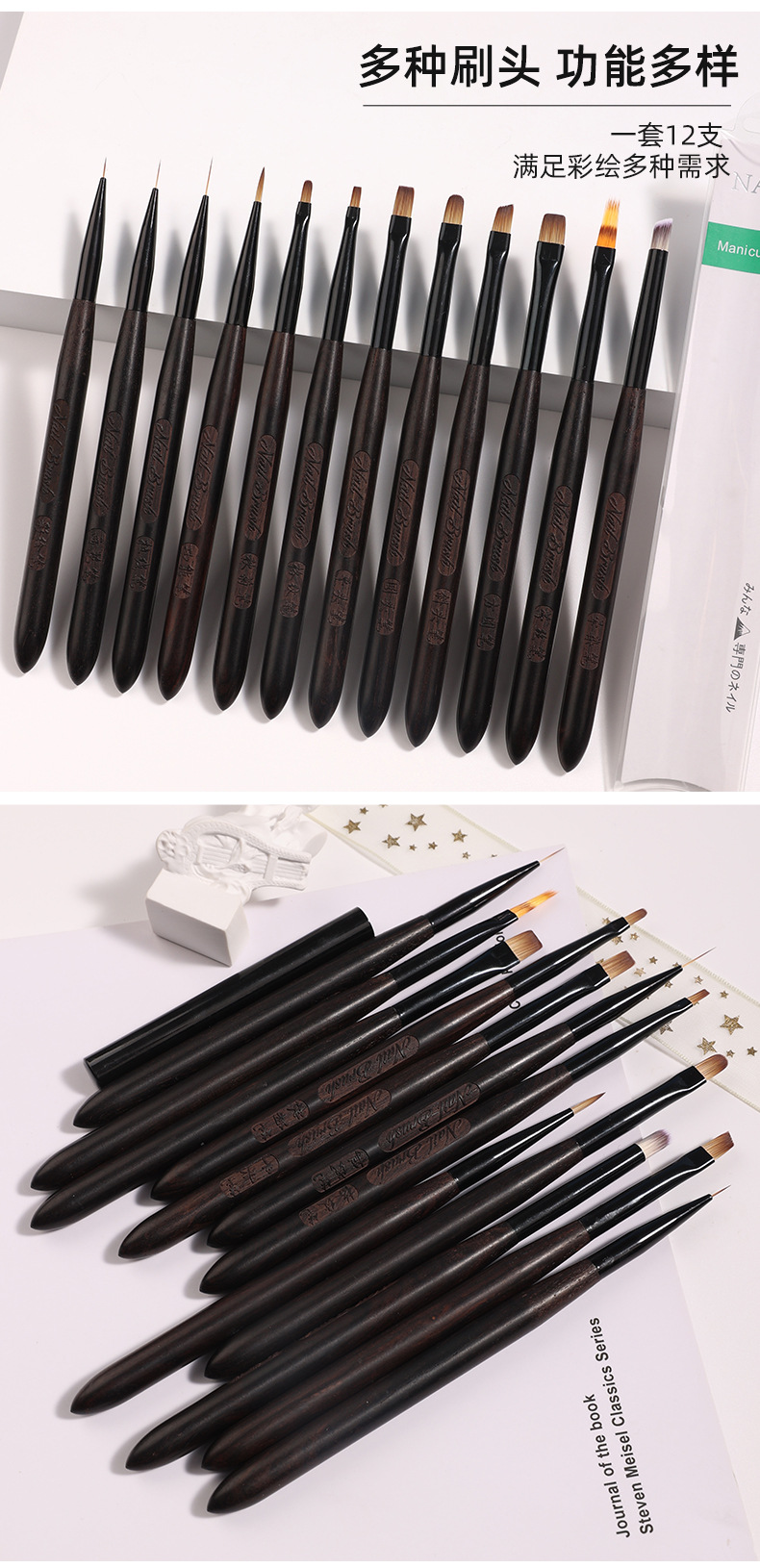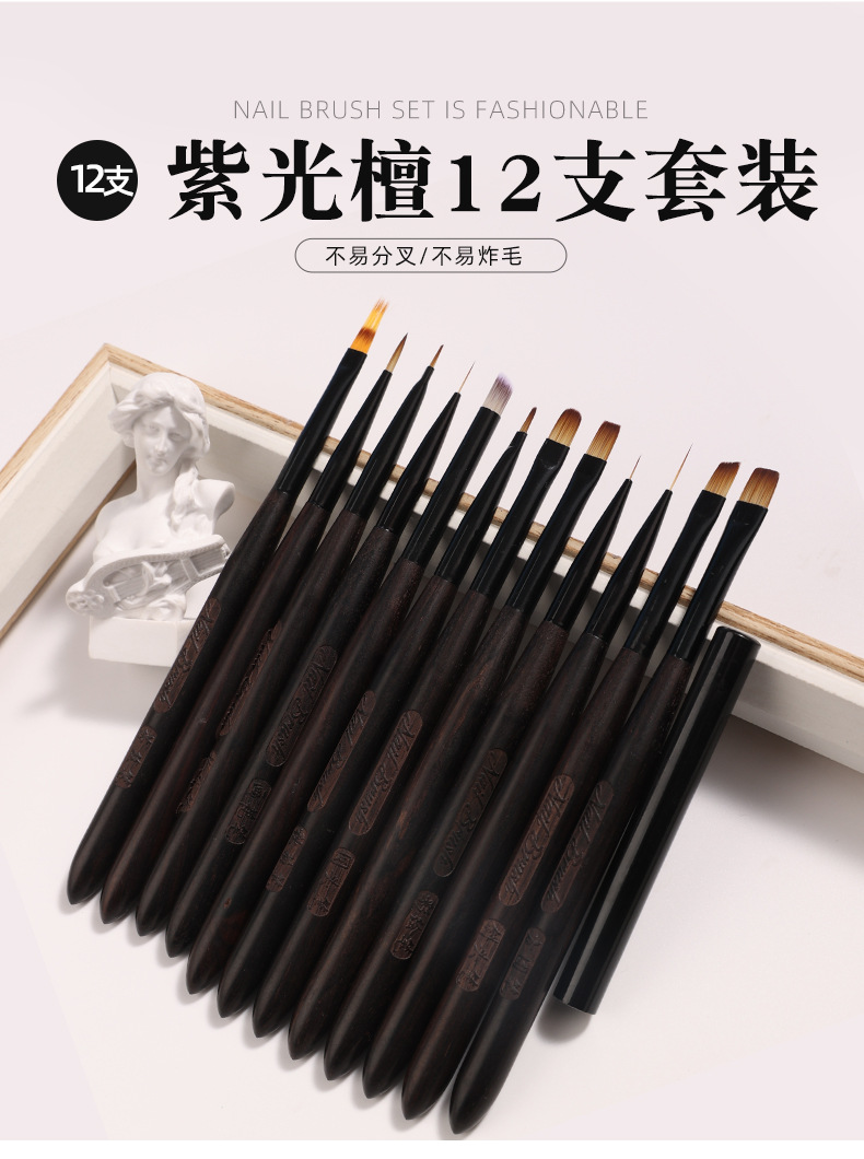 新品紫光檀12本ネイル専用ブラシセット檀木大方円筆秋菊筆色絵光治療筆