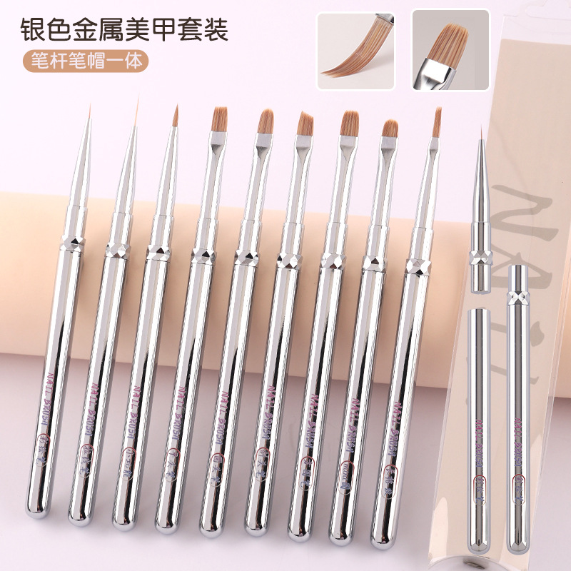 跨境新款美甲笔刷套装一体可拆卸拉线笔彩绘笔方圆光疗笔长格纹笔