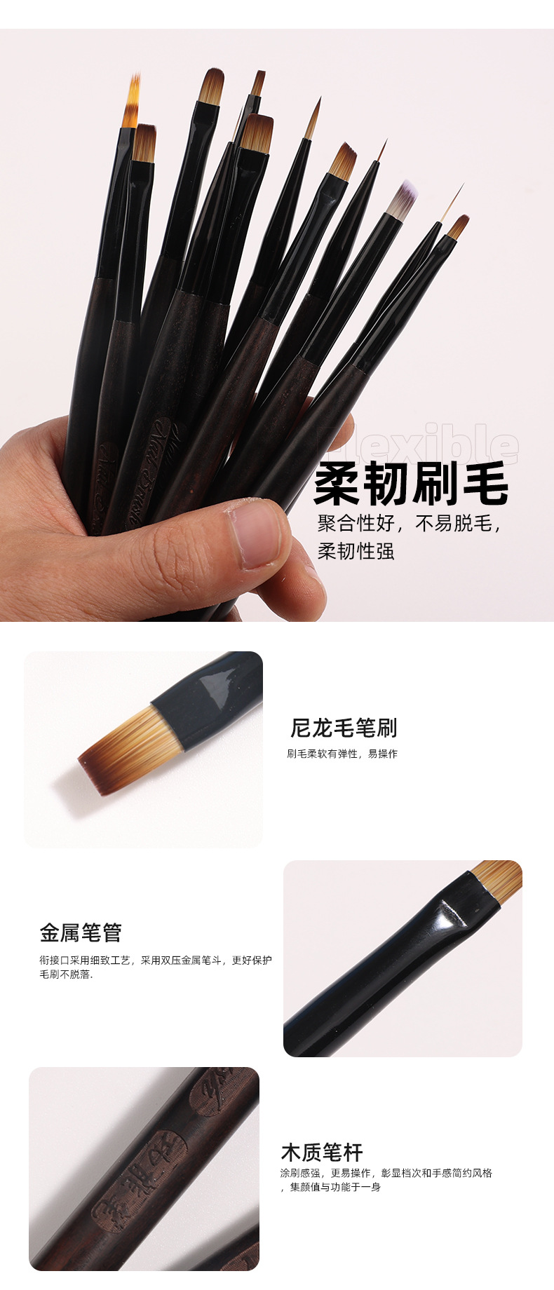 檀木美甲筆セット新型線引き筆色絵花筆ぼんやり筆