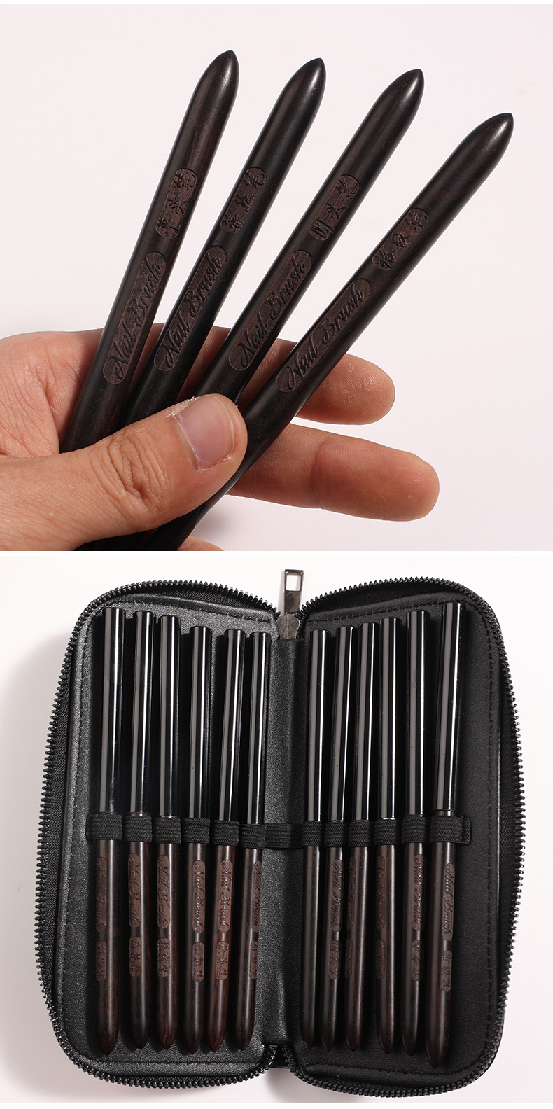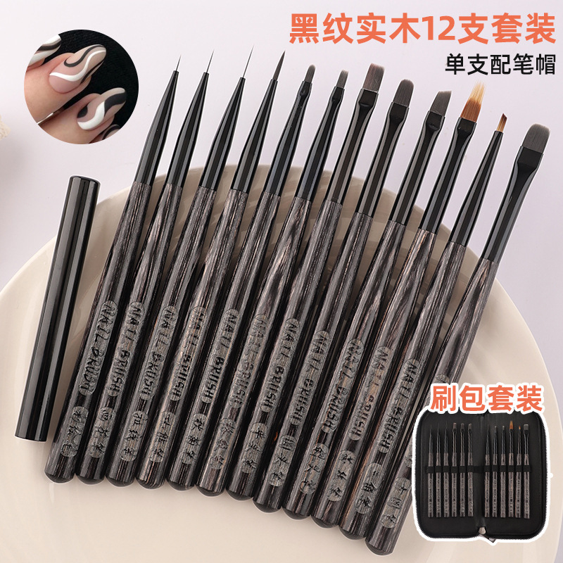 新しい和風黒模様木製ネイルアートペン専用ネイルセットペン三角彩描きペン大判丸ペン光療法ペンブラシ