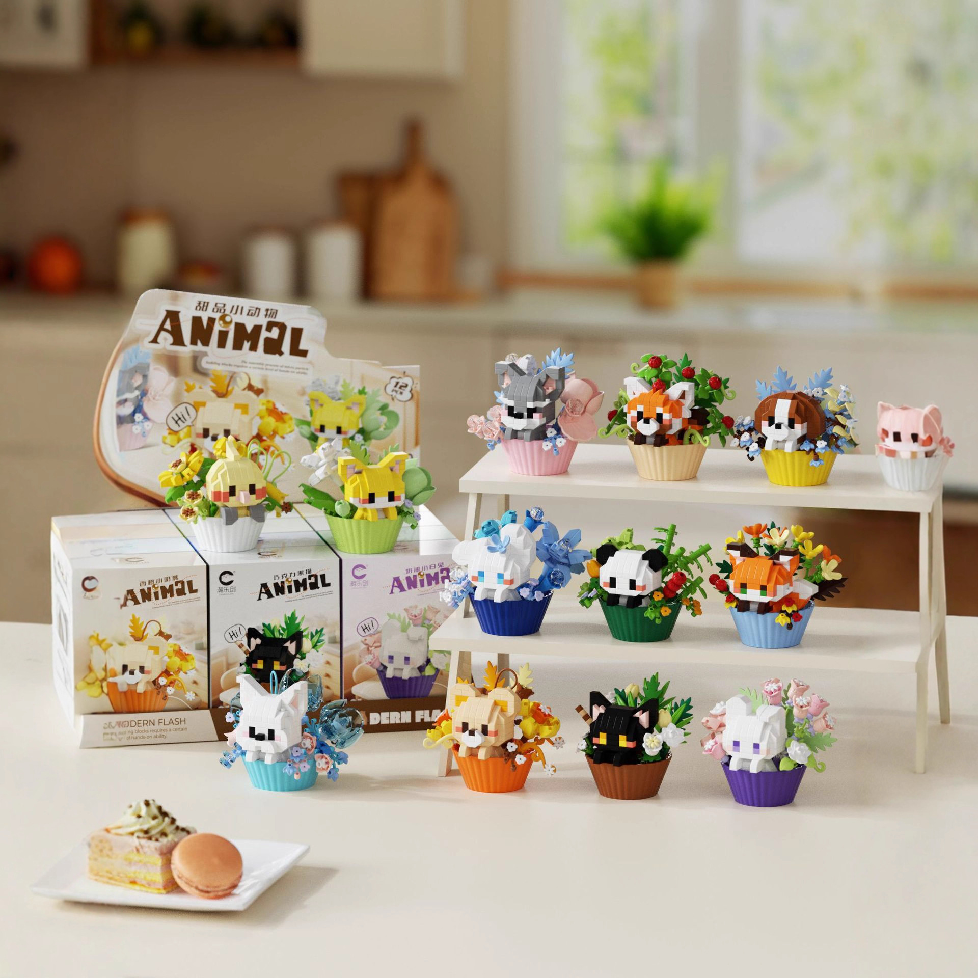 兼容乐高甜品小动物宠物积木KT小猫diy桌面摆件拼装玩具女孩礼物