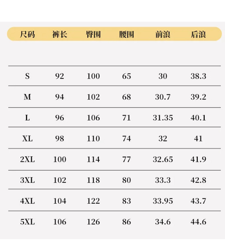 パンツのサイズ S,M,L,XL,2XL,4XL,5XL