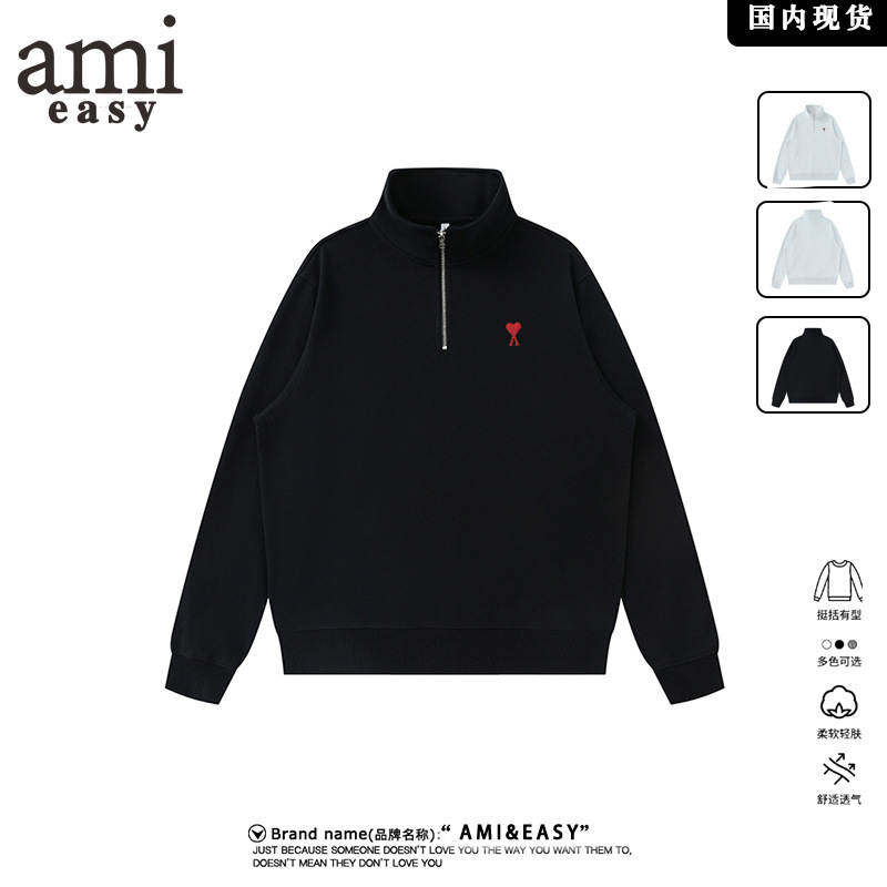 AMI & ARRT越境潮牌刺繍立襟半ファスナー男性式衛衣秋ファッショントレンドシンプル