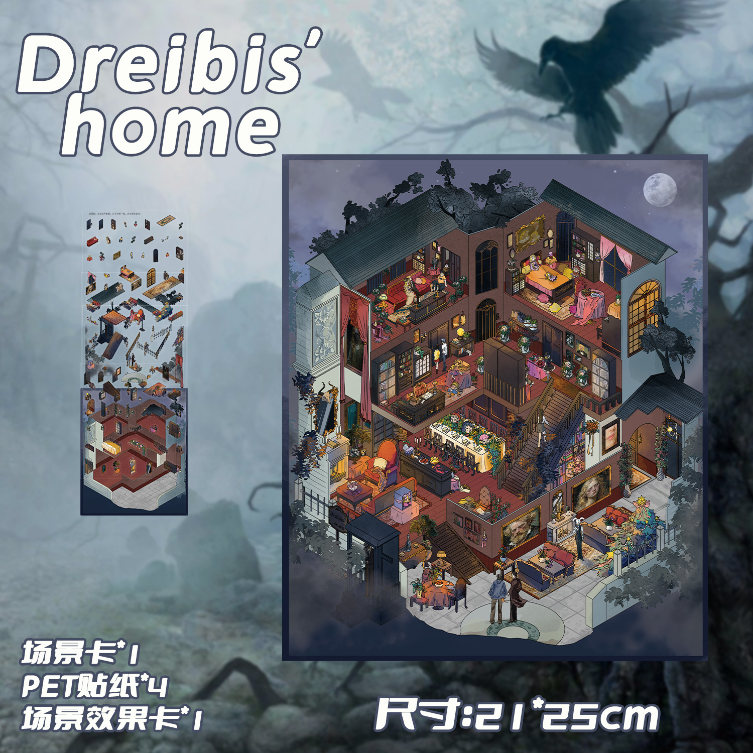 Dreibis'home造景贴跨境卡通贴纸PET立体微缩视觉3D小屋手账贴纸