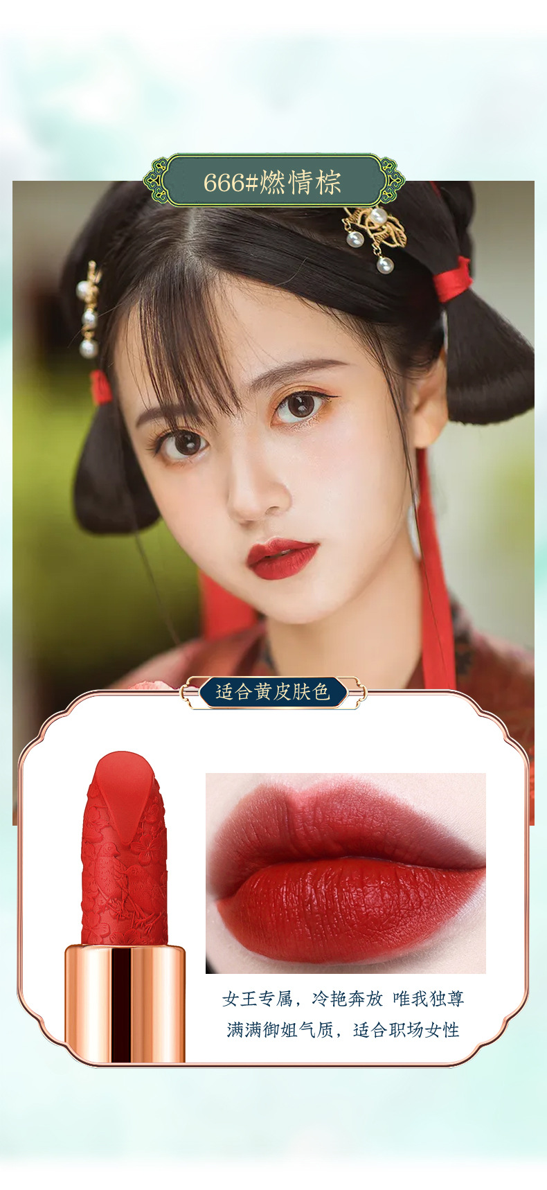 mixizi中国风柔雾丝滑雕花方管口红不易沾杯国潮风正品持久
