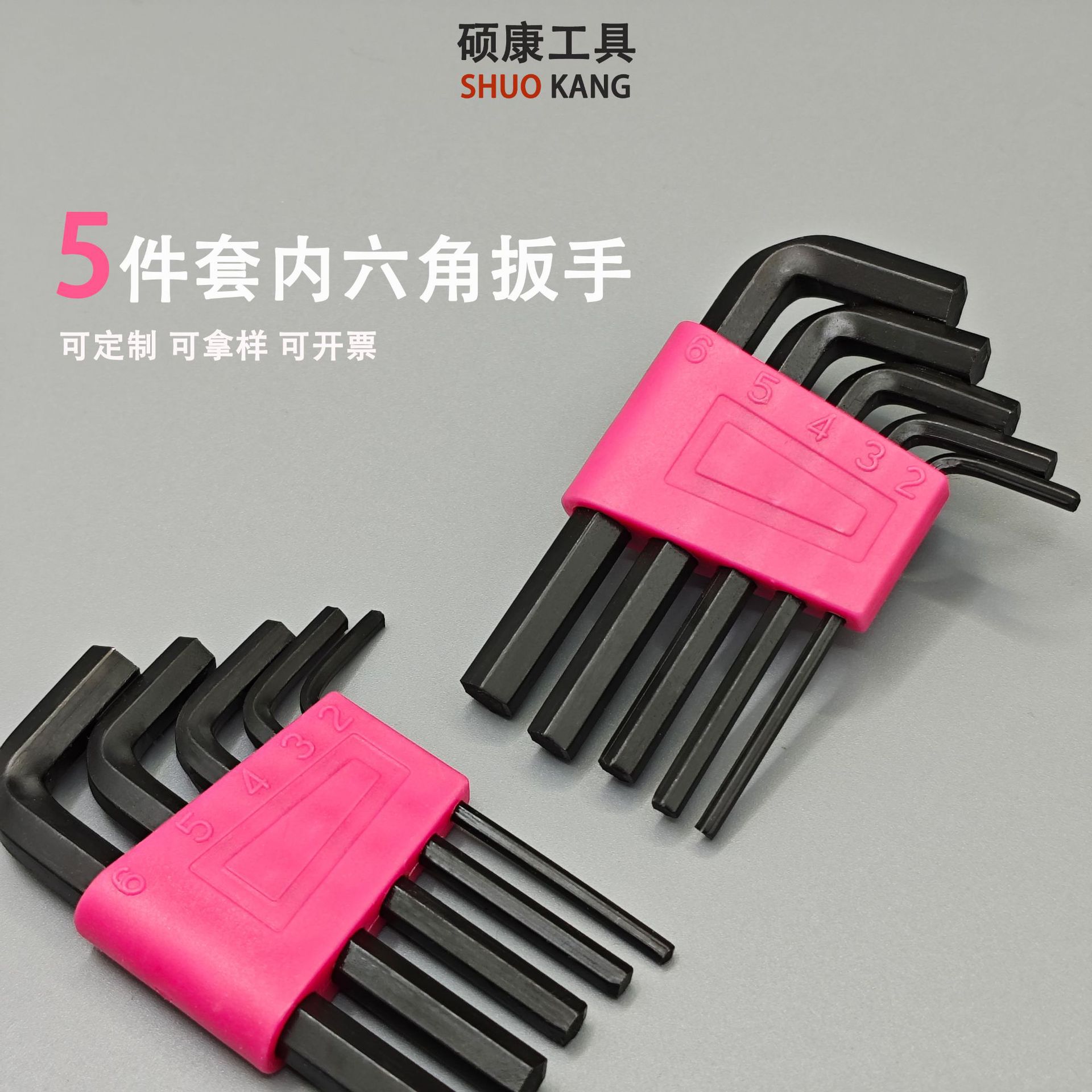 ショート六角レンチ ピンクセット 六角ドライバー 六角板 黒メッキ 5本セット 六角レンチ
