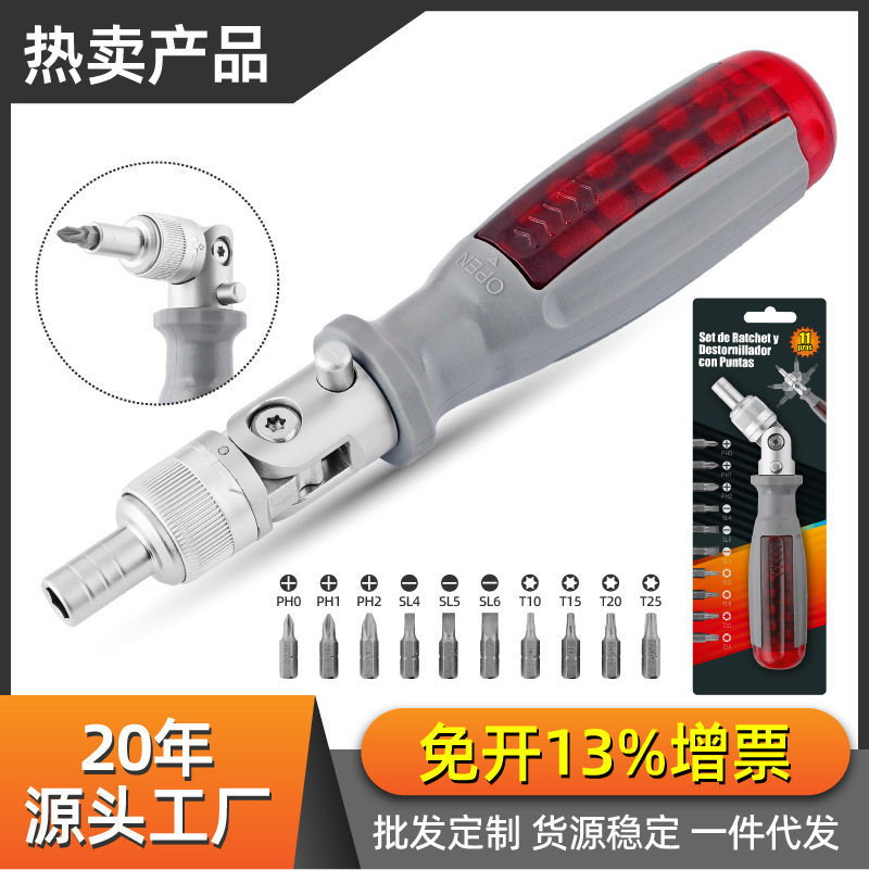 多角度10一体型ラチェットドライバーセット工業級家庭用多機能一字十字ヘッドセット