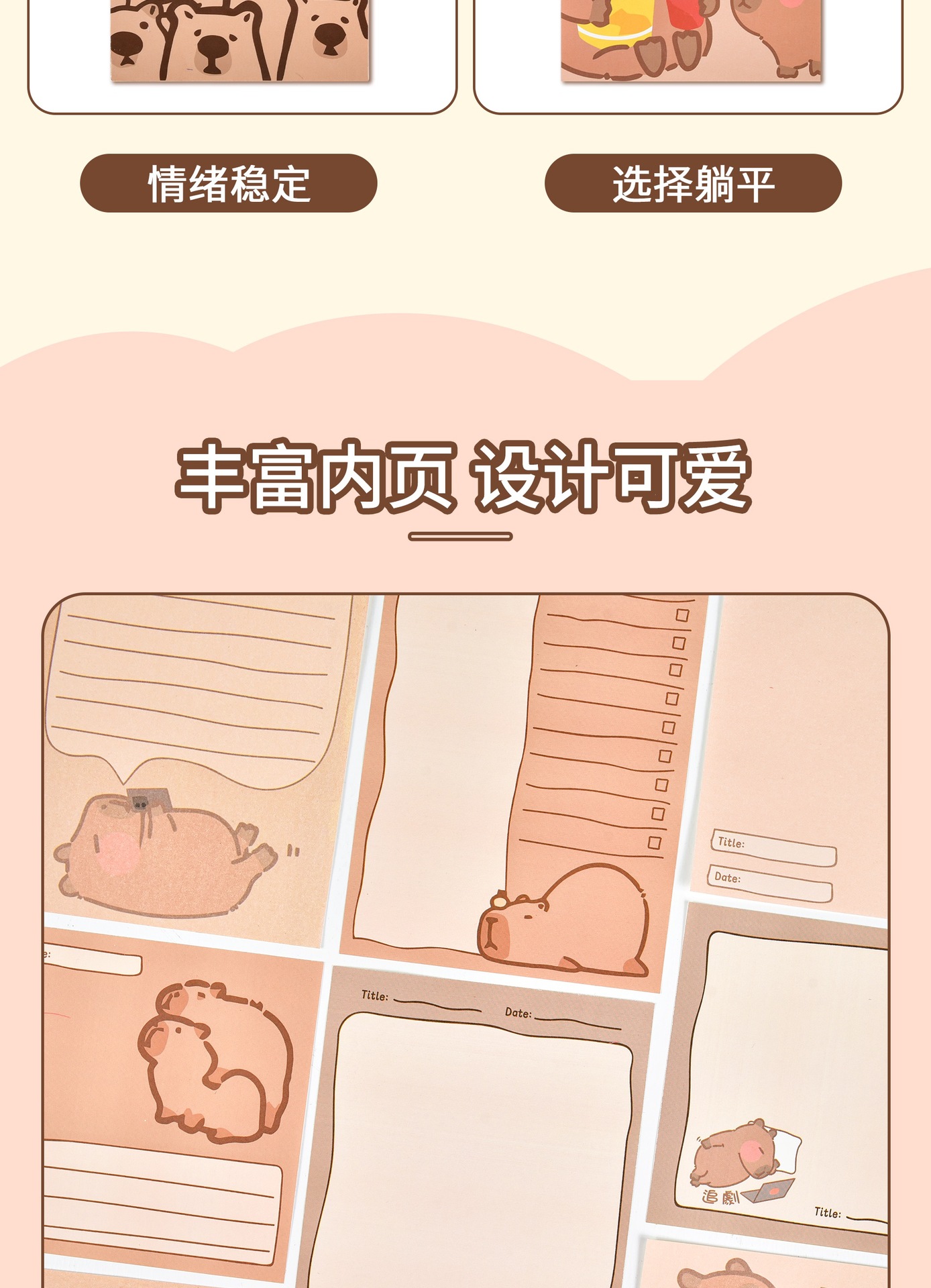 カピバラカピバラ便箋本かわいいアニメノート携帯は粘りのない手帳ノートを裂くことができる