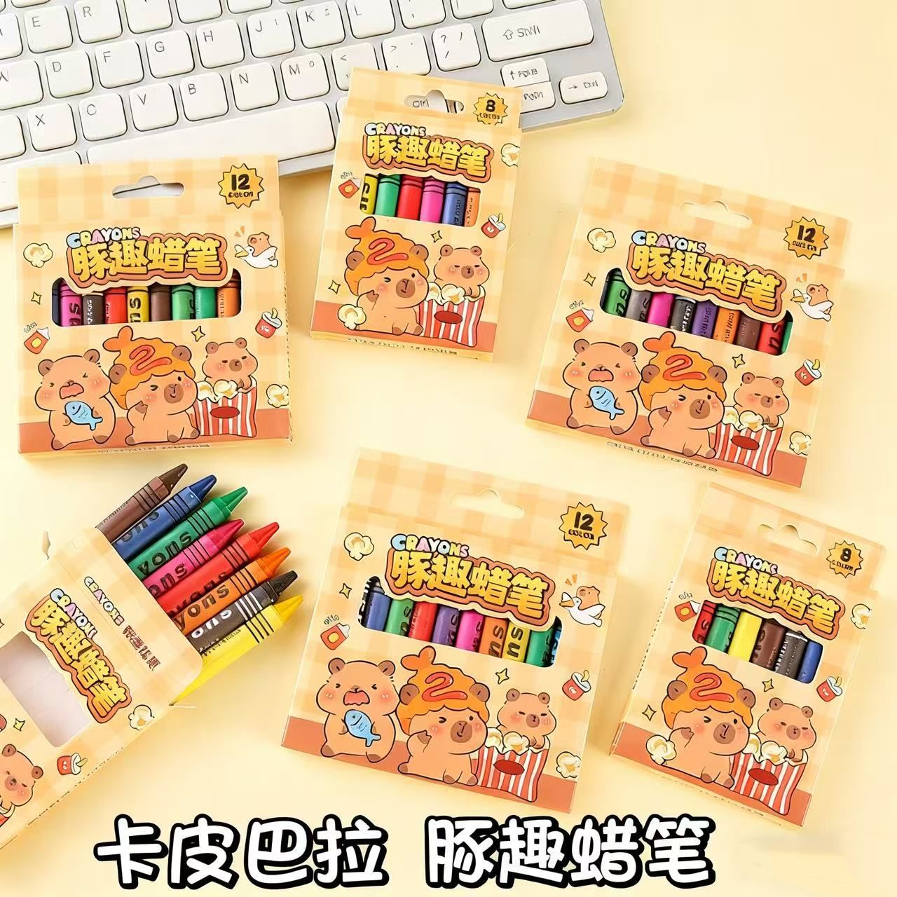 儿童彩色蜡笔8色12色卡皮巴拉蜡笔绘画涂鸦油画棒幼儿园文具奖品