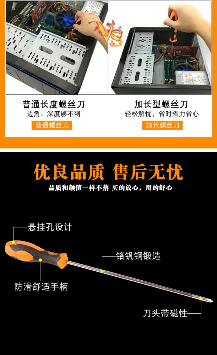 延長ドライバー十字一字長柄長竿長尺ミシン修理用磁気ドライバー