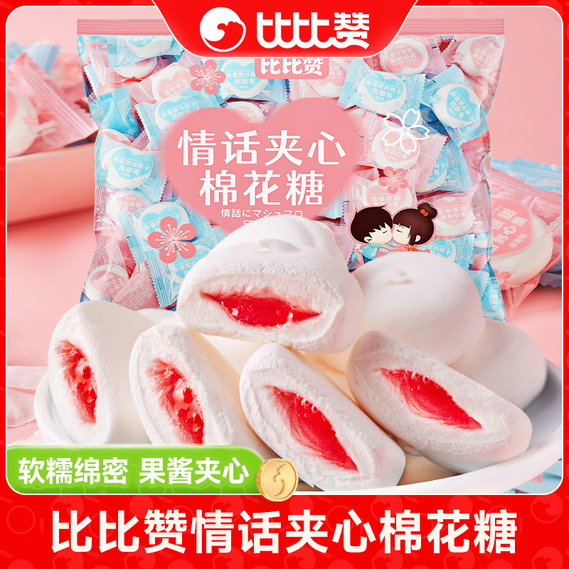 比比赞草莓味棉花糖结婚喜糖夹心软糖婚庆糖果小零食品散装批发