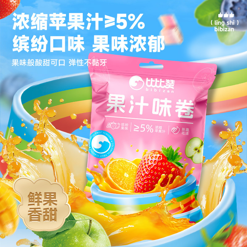比比赞果汁味卷水果味卷喜糖软糖果儿童休闲解馋小零食品散装批发