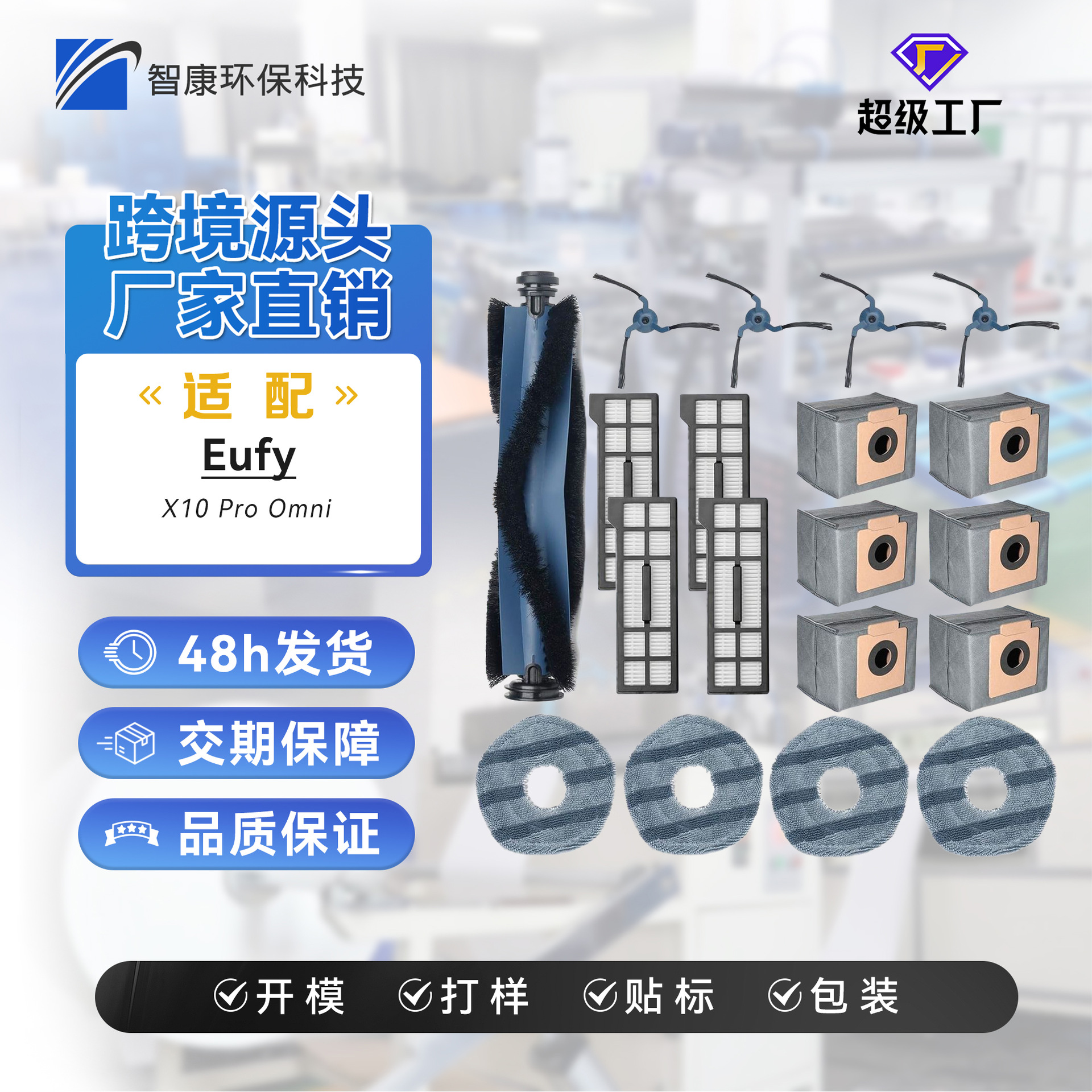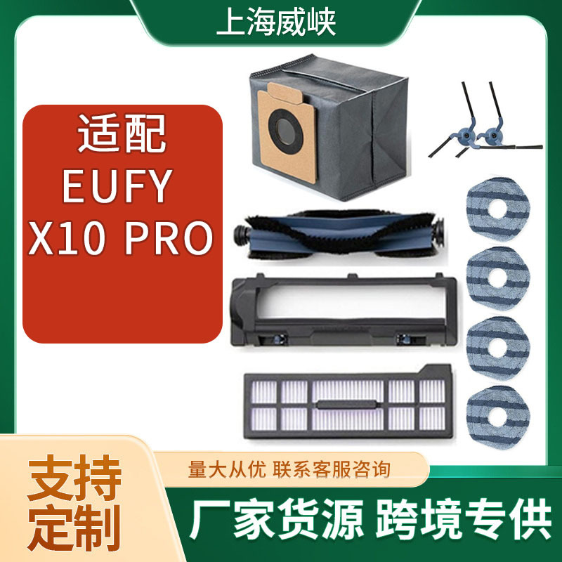 适用EUFY X10 PRO扫地机器人配件滚刷边刷条纹抹布黑色滤芯除尘袋