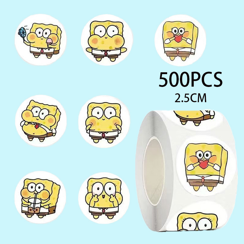 圆形卡通贴纸铜版纸卷装不干胶标签儿童装饰贴纸500贴/卷