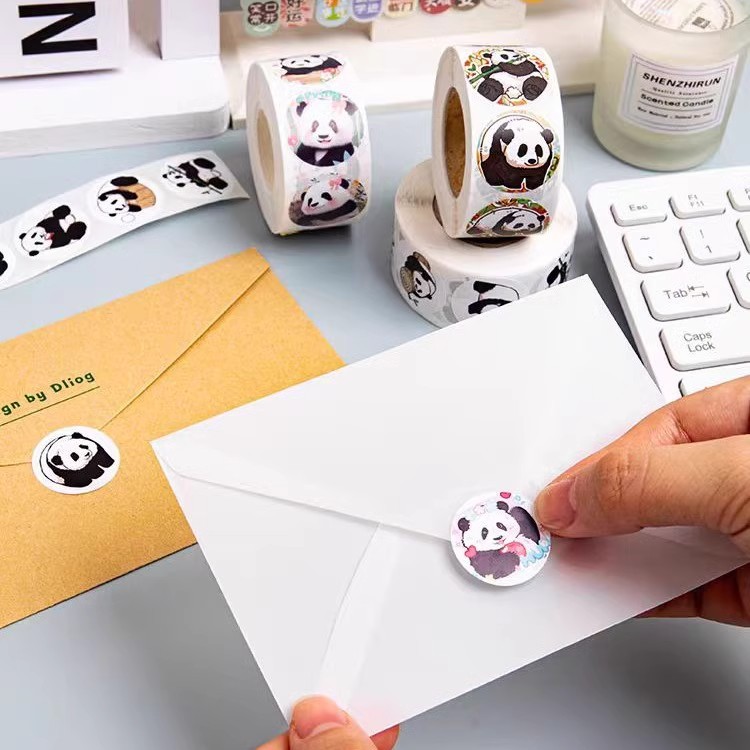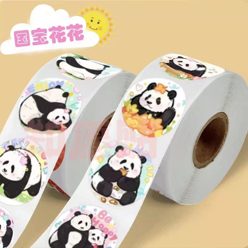 国宝フラワー可爱いジャイアントパンダ巻きシール手帐素材饰り材料封筒封口ドットステッカー