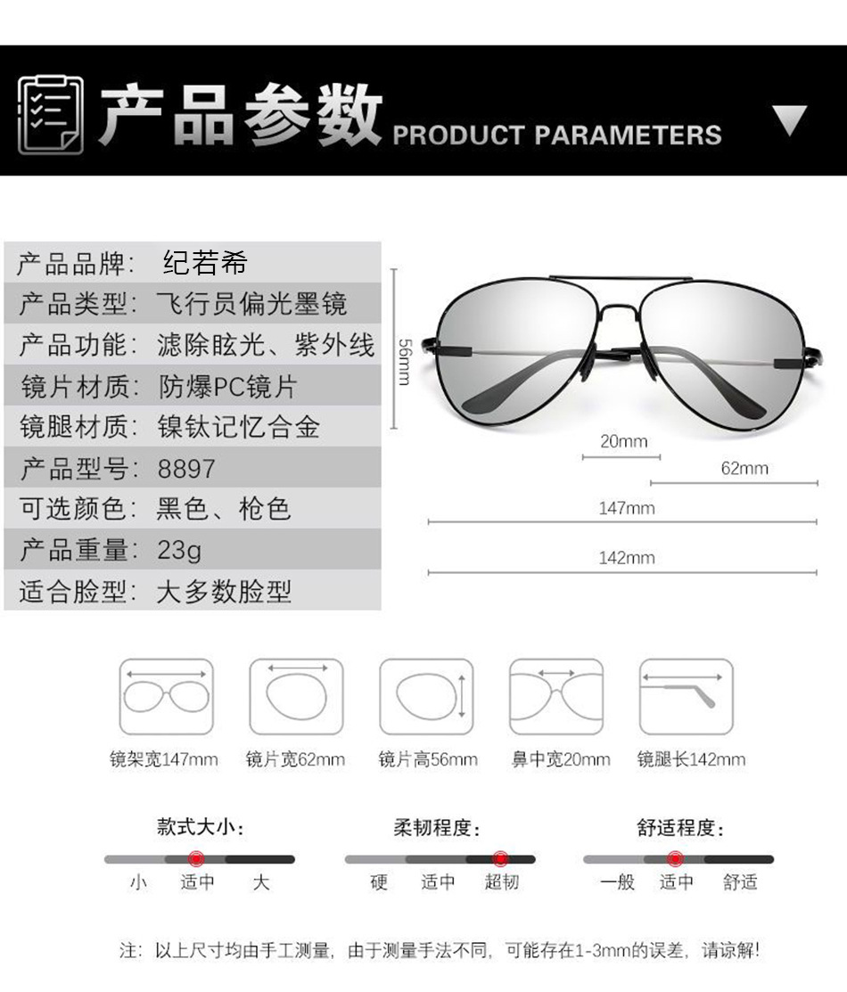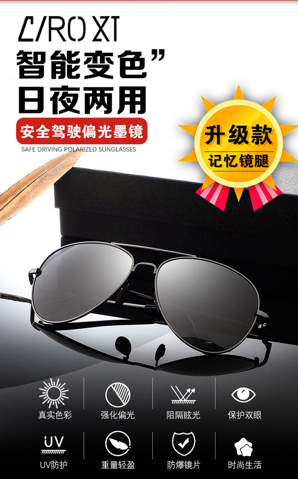 昼と夜の両用サングラス男知能変色偏光紫外線防止ハイビジョンサングラス釣り運転運転カメラ