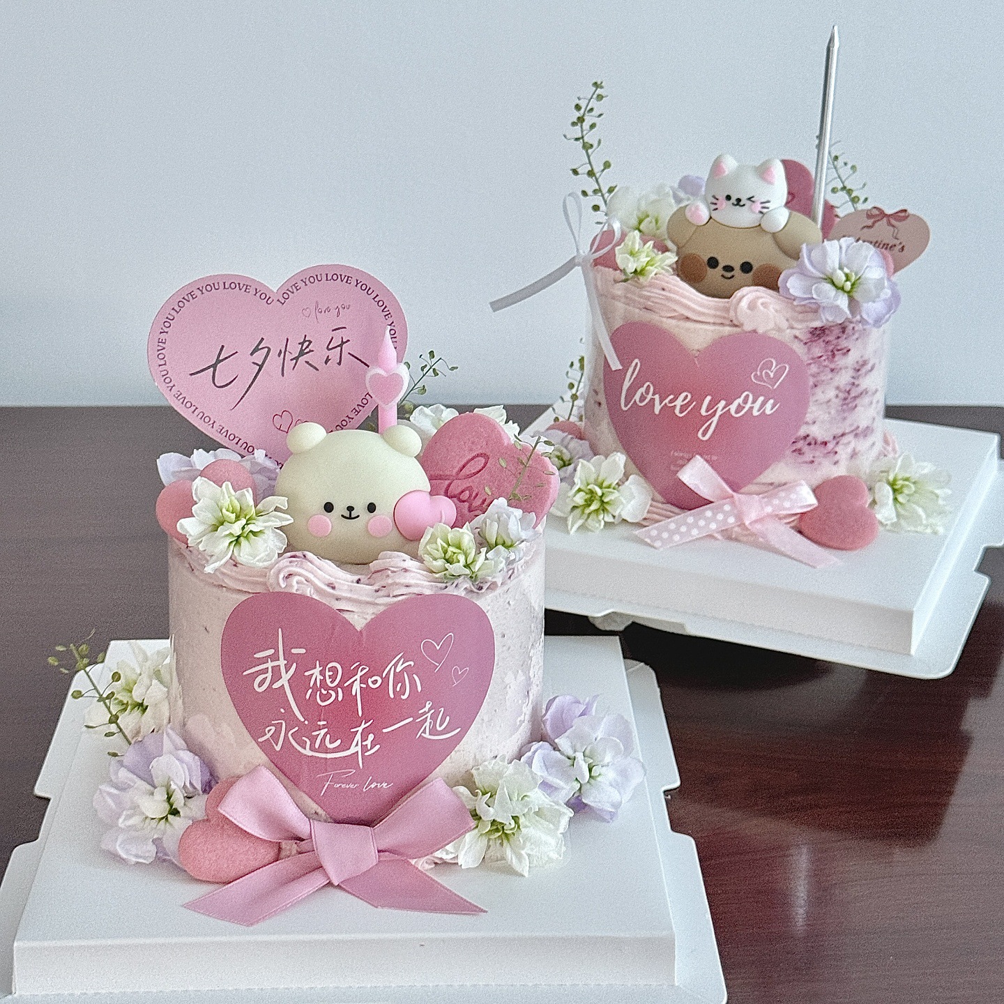 七夕情人节软胶比心小熊蛋糕装饰摆件情侣爱心卡片贴纸烘焙装扮